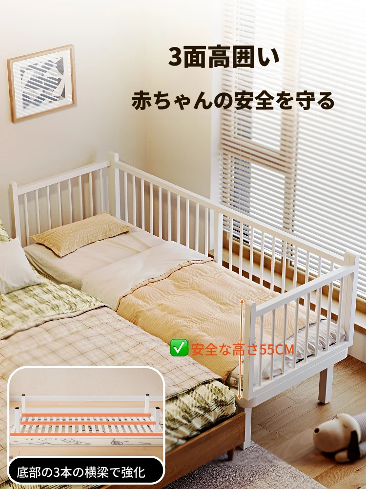 鉄製ジョイントベッド【子供・赤ちゃん用】大人も寝られる!サイド拡張で快適な寝室に。隙間なしで安心、安全な睡眠空間を実現する便利な拡張マジック!