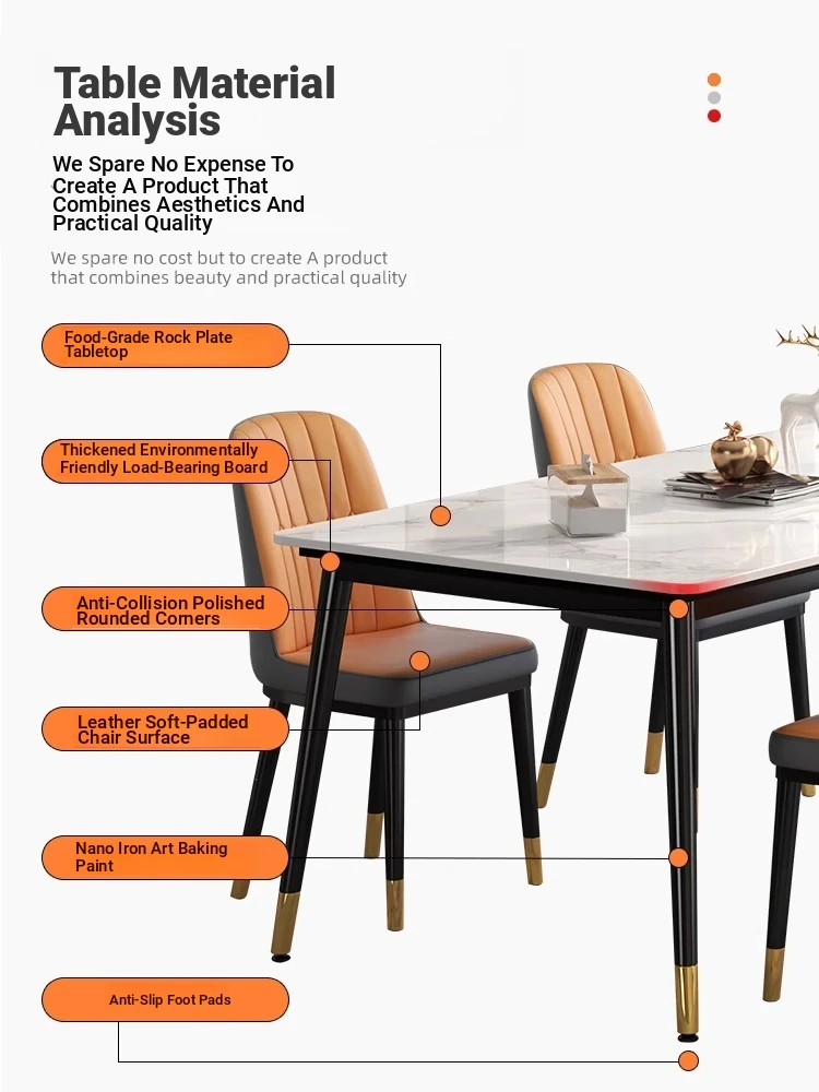 Modern Minimalist Marble Dining Table Set for Small Spaces - Elegant Rectangular Dining Table with Chairs for Home Use