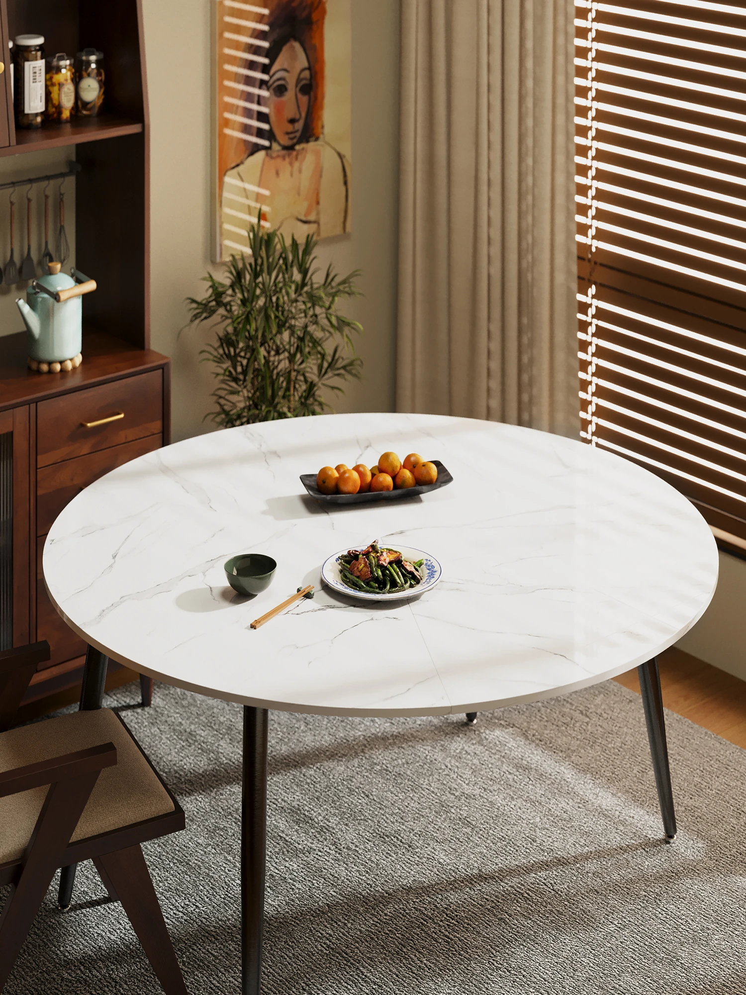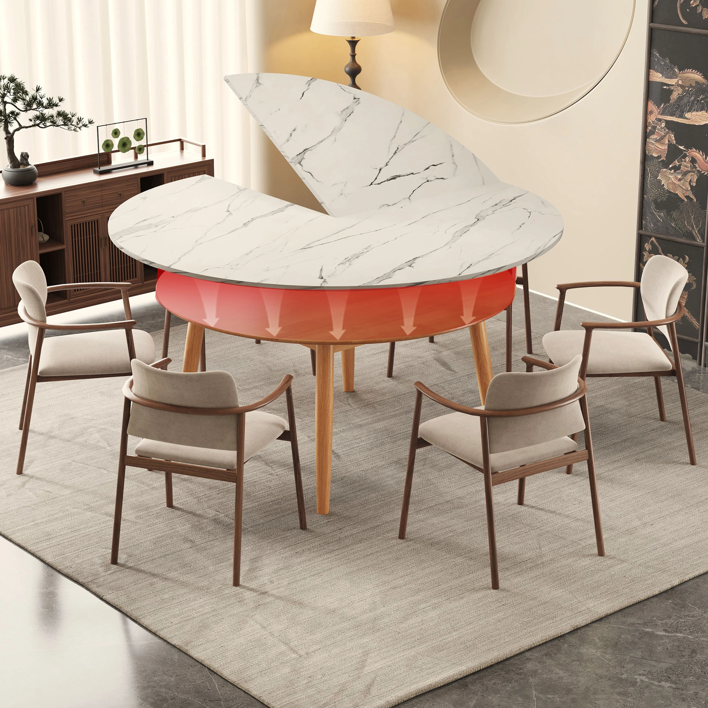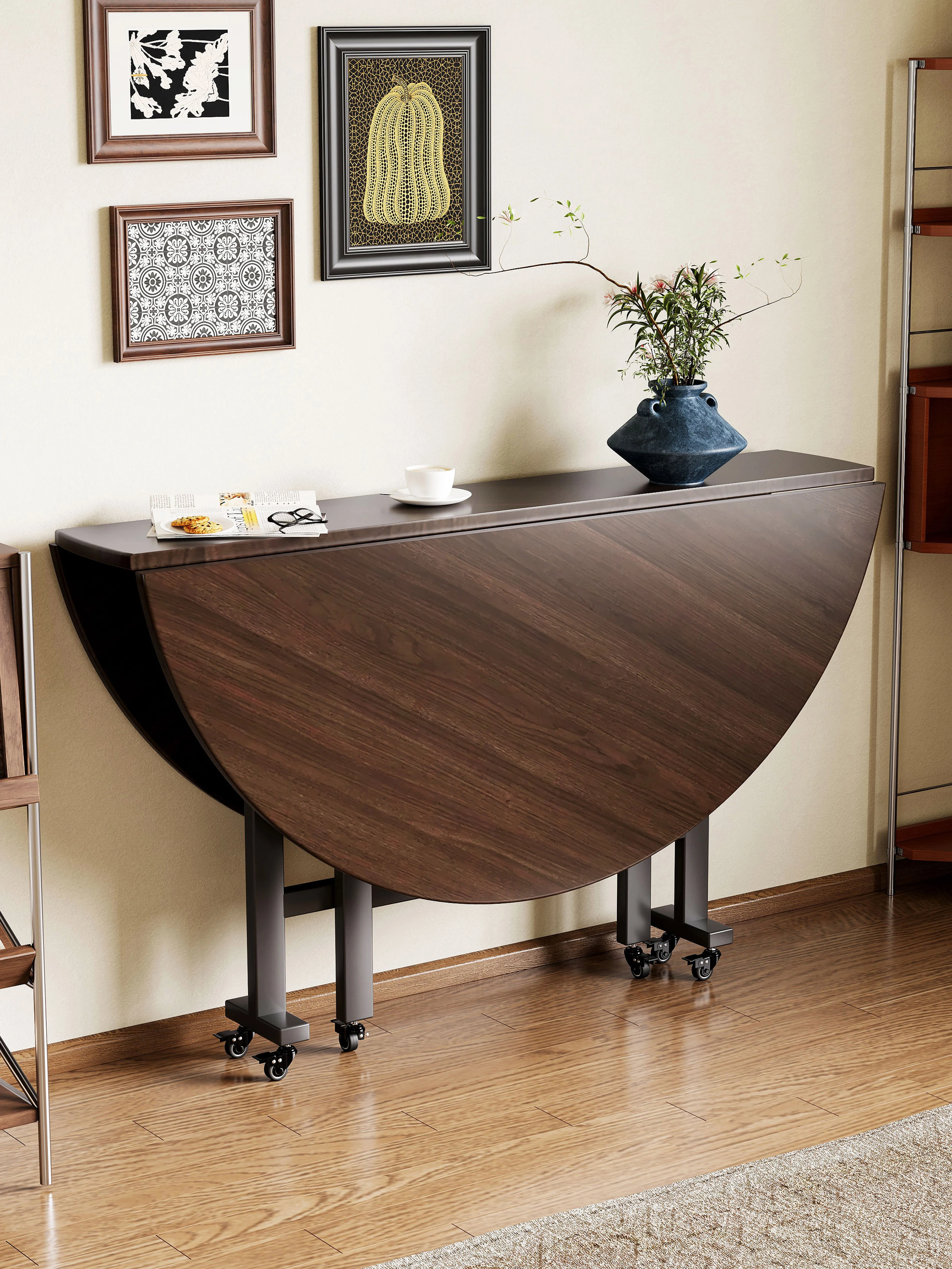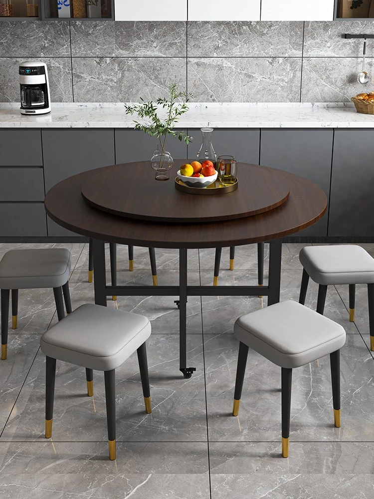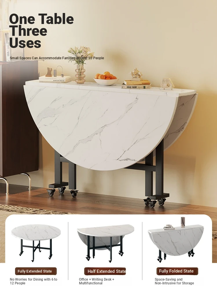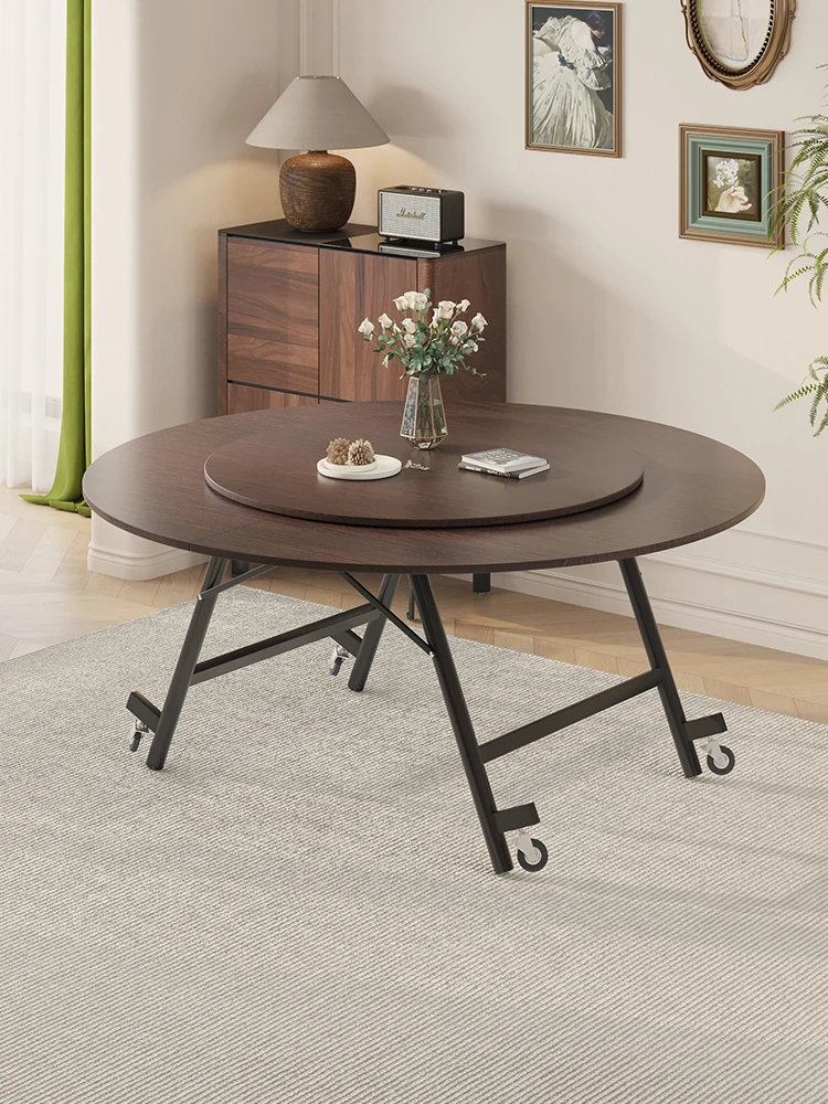 2025 New Folding Round Dining Table for Small Spaces – Seats Up to 10 People, Conveniently Mobile with Rotating Center for Effortless Dining Experience