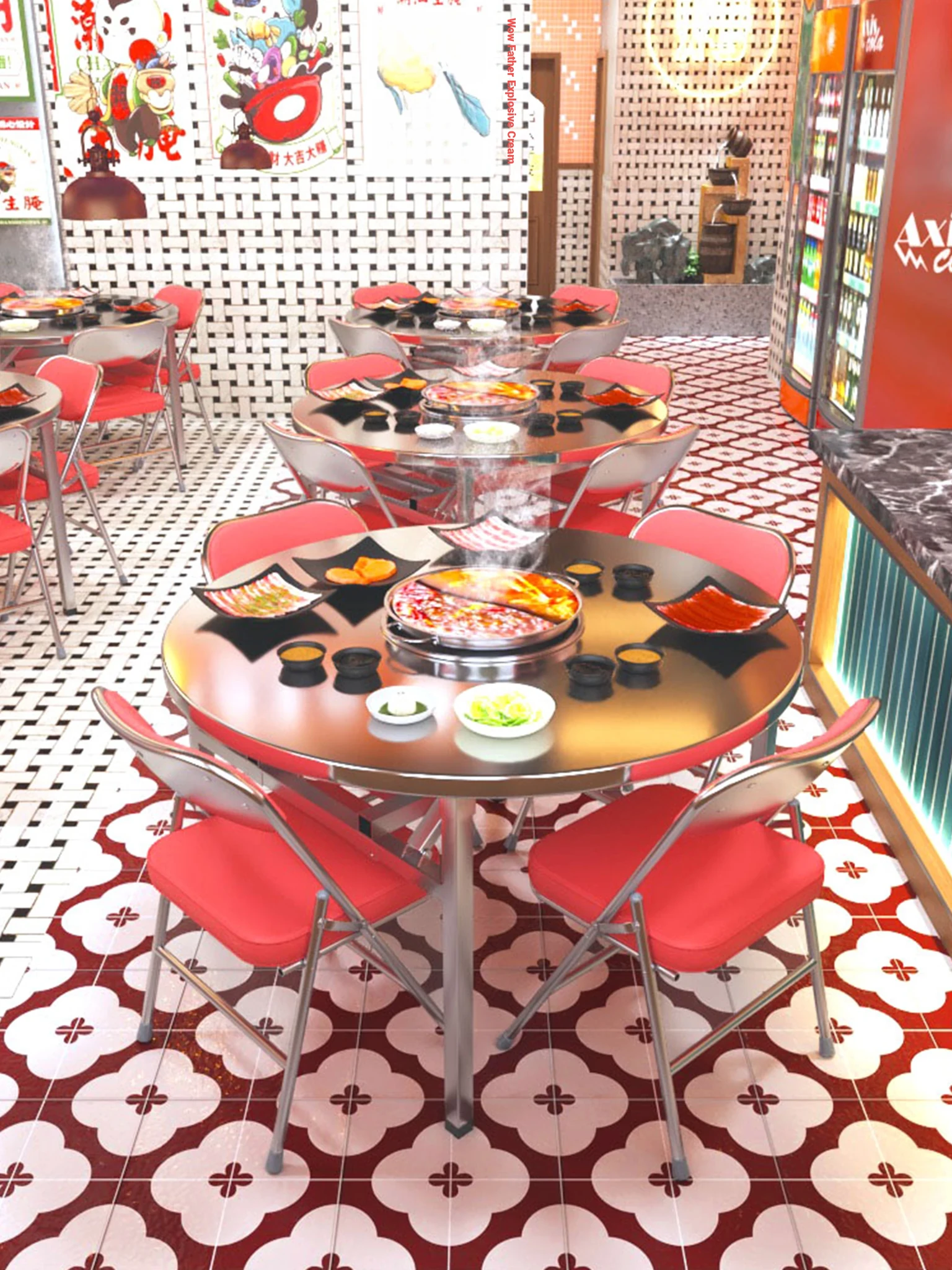 Stainless Steel Hot Pot Table for Commercial Use - Foldable Round Table with Built-in Portable Gas Stove for Street Food Stalls and Casual Dining, Perfect for Skewers and Hot Pot Restaurants
