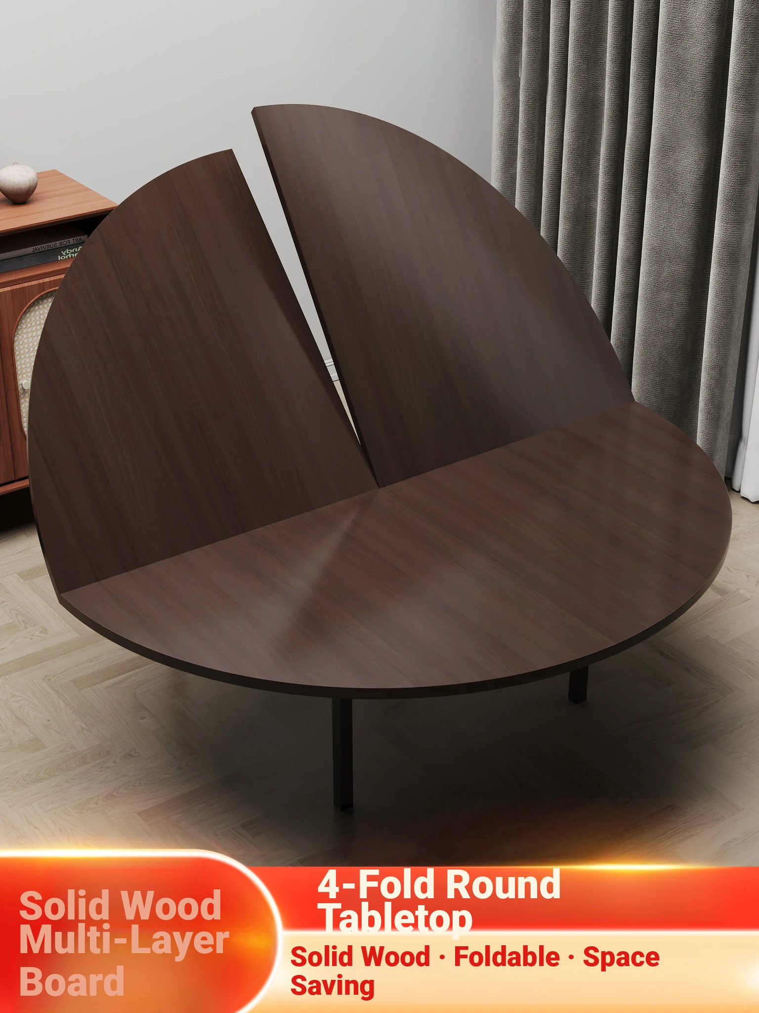 Expandable Round Dining Table Top - 4-Fold Design for Home Use, Accommodates 10 to 20 People, Perfect for Family Gatherings and Parties!