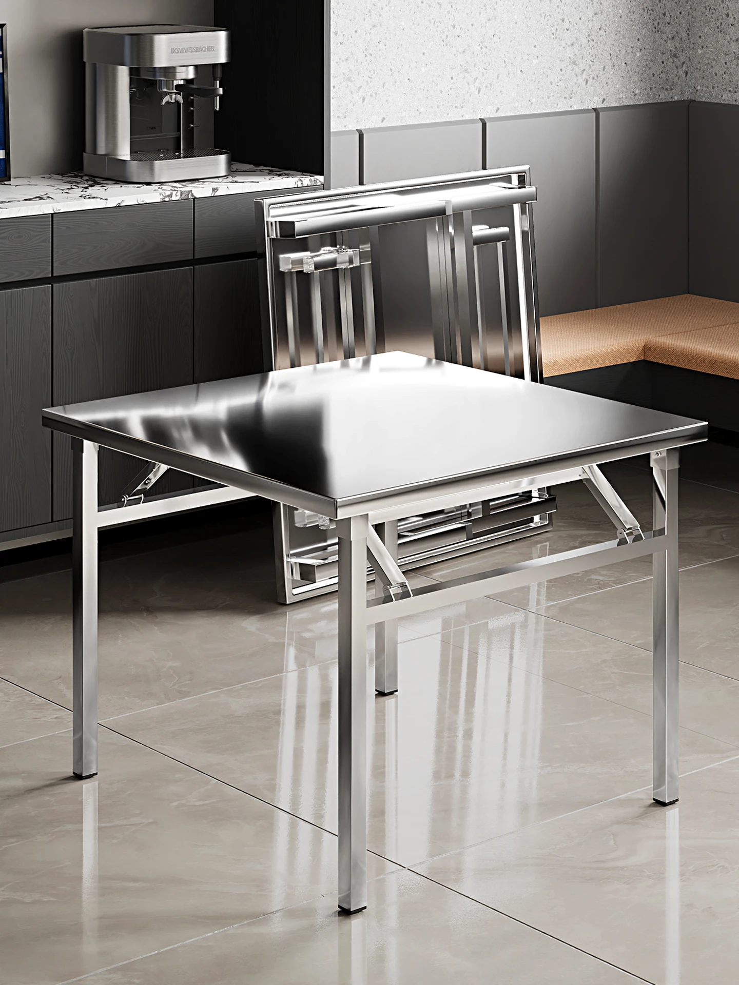 Portable Stainless Steel Folding Table for Outdoor BBQ – Compact Square Dining Table for Night Markets and Street Vendors