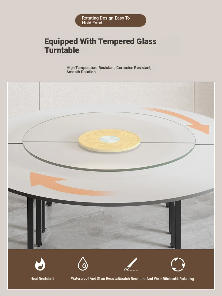 Foldable Large Round Dining Table for 15 People - Perfect for Family Gatherings, Rural Homes, and Restaurants - Spacious 10-Person Seating with Lazy Susan for Easy Sharing