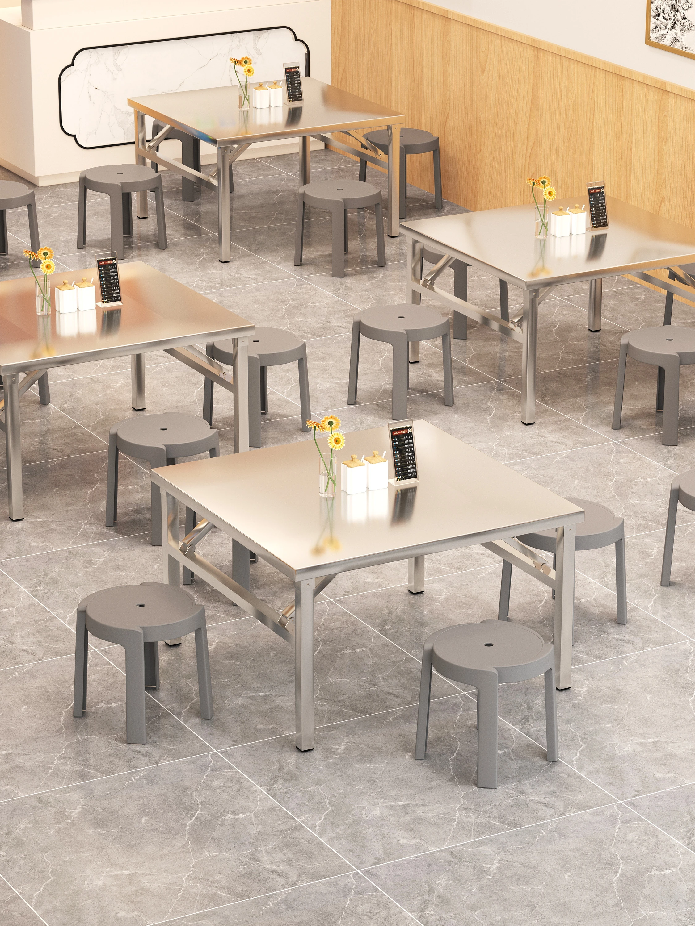 Commercial Dining Negotiation Table and Chair Set - Perfect for Milk Tea Shops, Fast Food Restaurants, and Cafeterias. Durable Stainless Steel Dining Table for Home or Small Round Dining Needs.