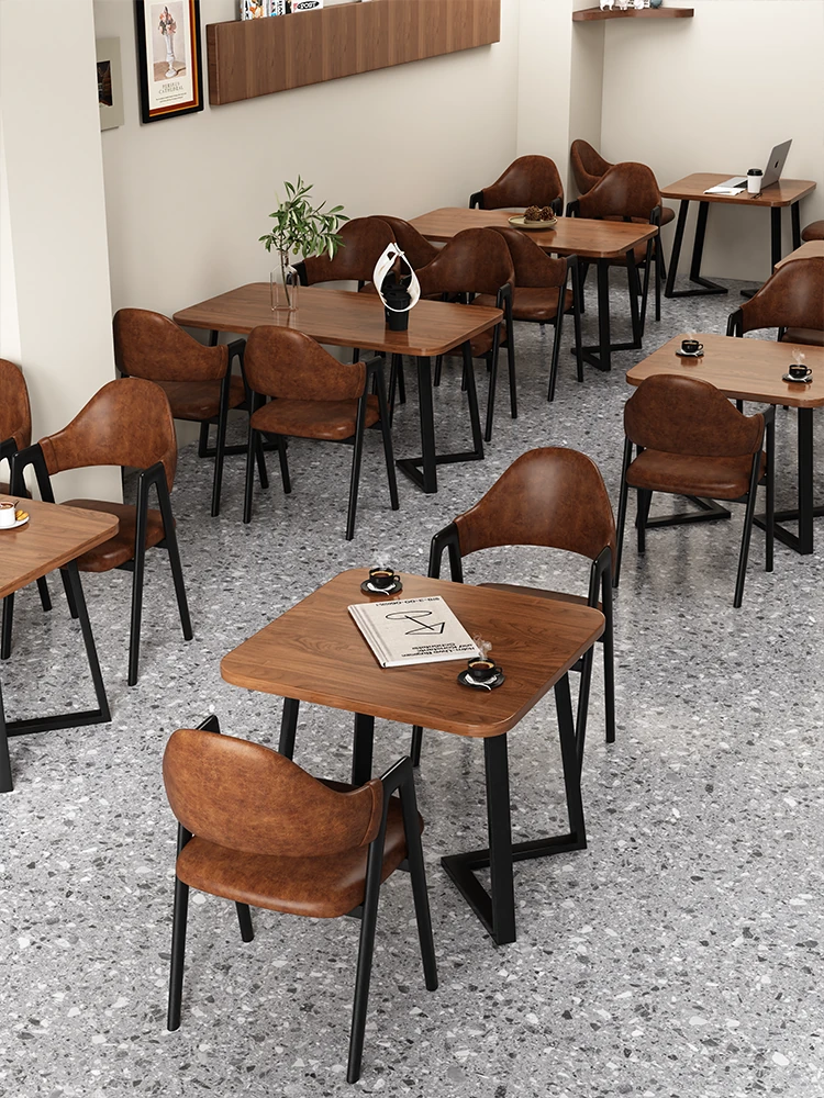Retro Rectangular Dining Table Set for Fast Food Restaurants - Perfect for Cafes, Snack Bars, and Noodle Shops - Durable and Stylish Commercial Furniture for Your Dining Needs!