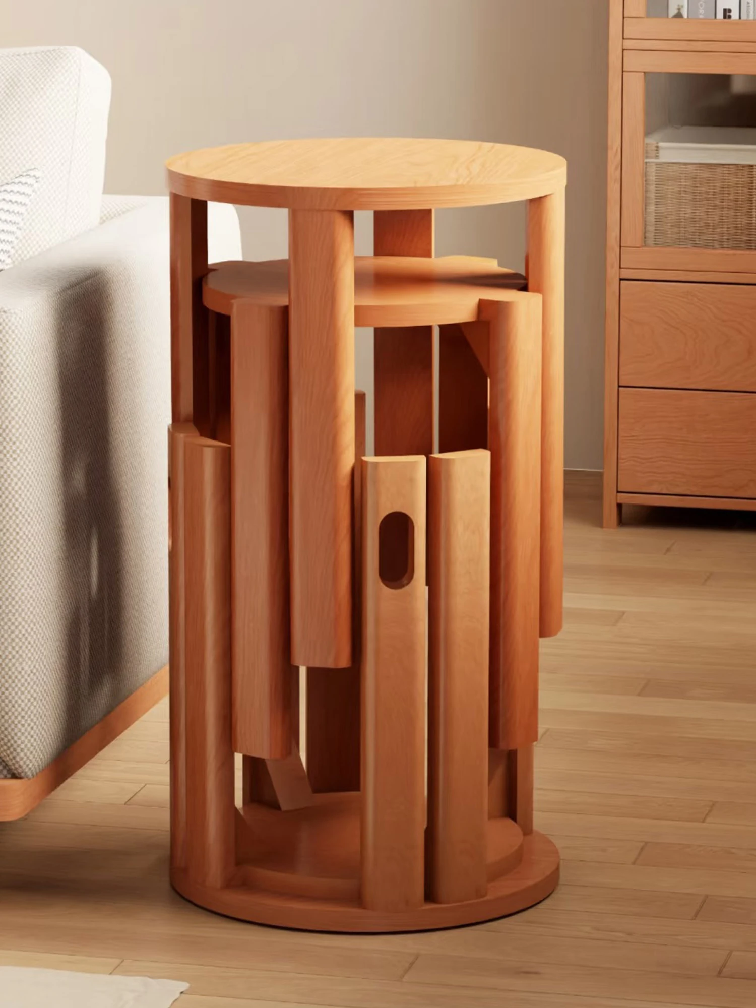 Vintage Solid Wood Dining Table and Stool Set - Versatile 4-in-1 Stacking Stool with Elegant Design for Home Use, Space-Saving Round Stool for Extra Seating