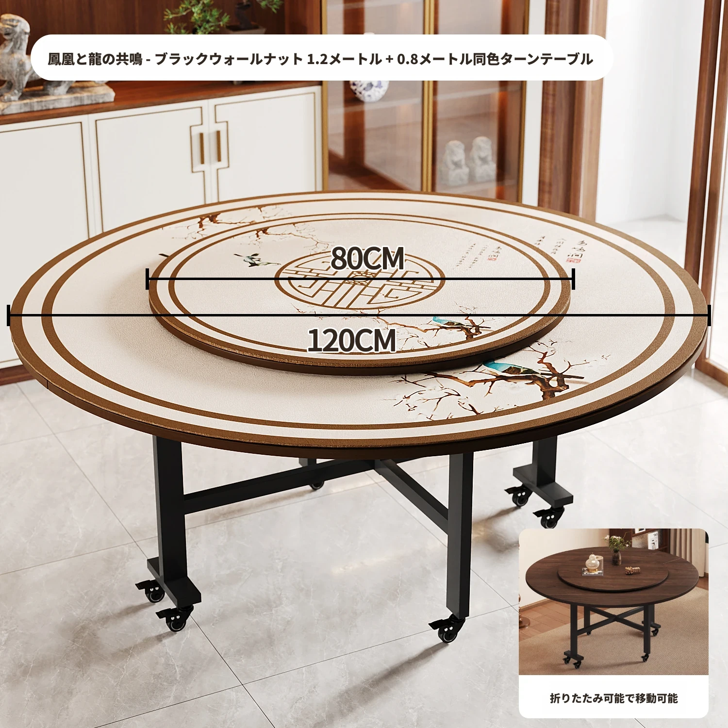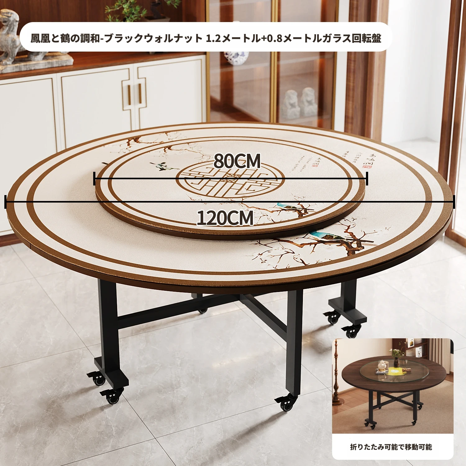 鳳凰の和音-1.2メートル【ブラックウォールナット柄】ガラス回転盤付き 防汚耐磨[輸出品質]