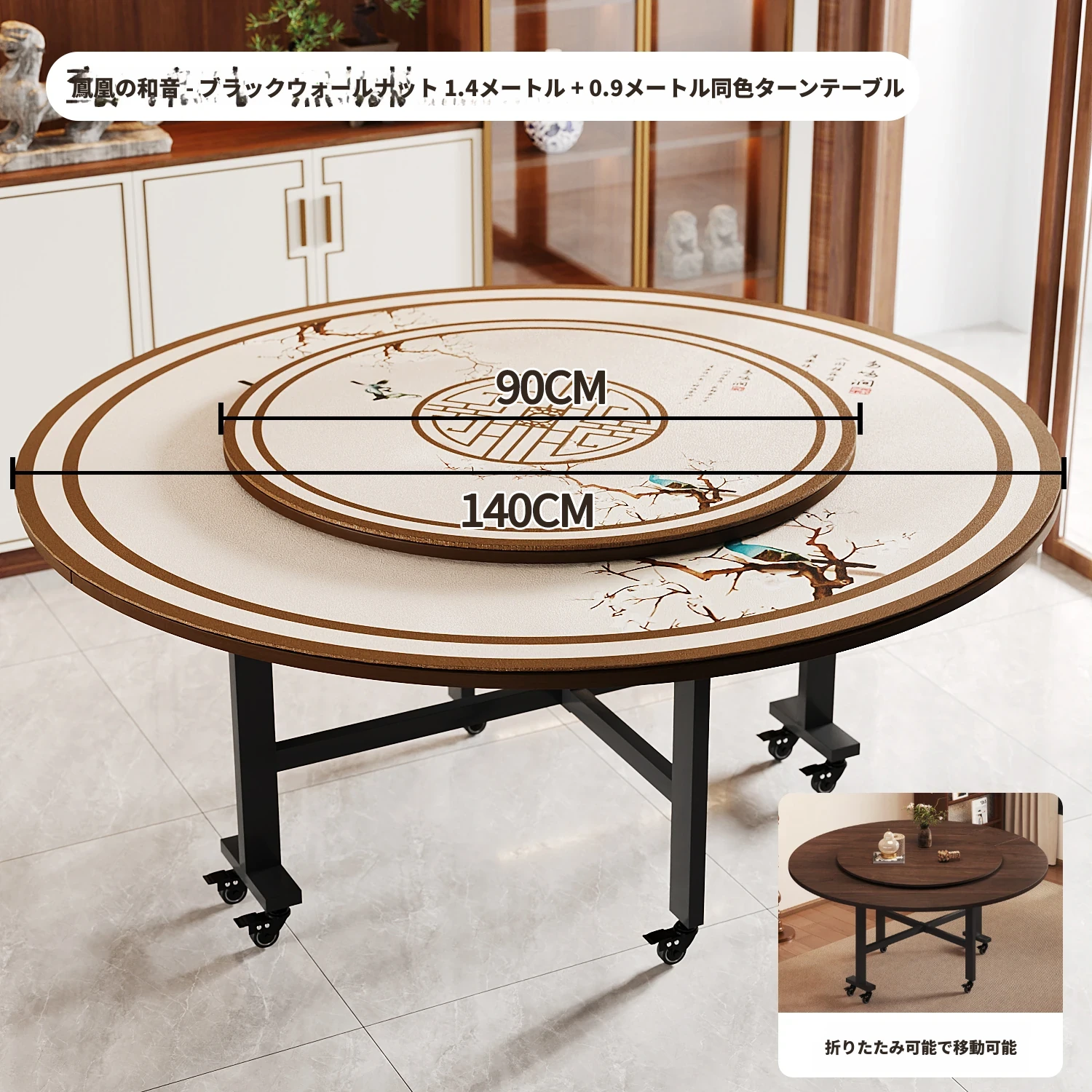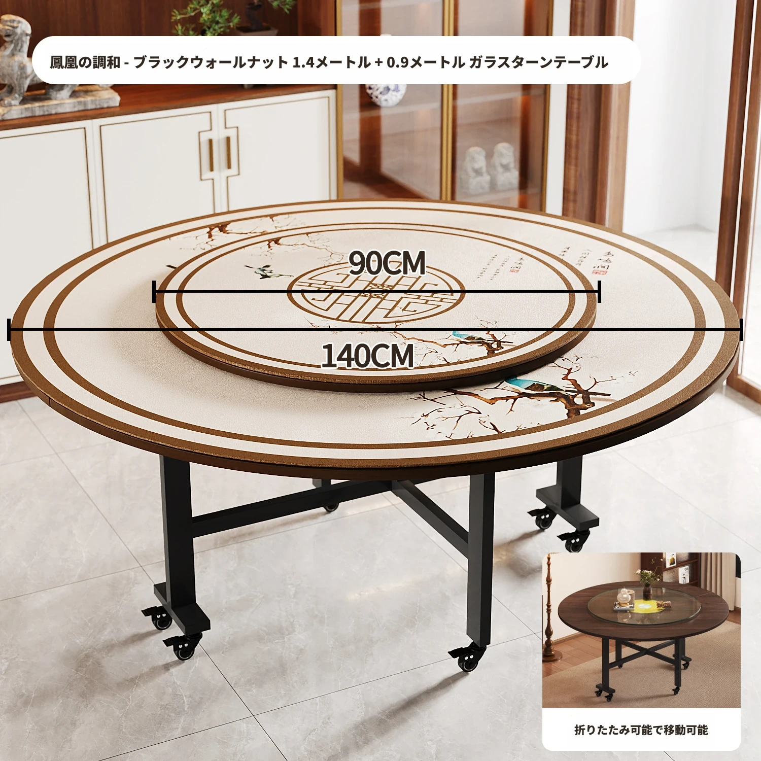 鳳凰の和音-1.4メートル【ブラックウォールナット柄】ガラス回転盤付き 防汚耐磨[輸出品質]