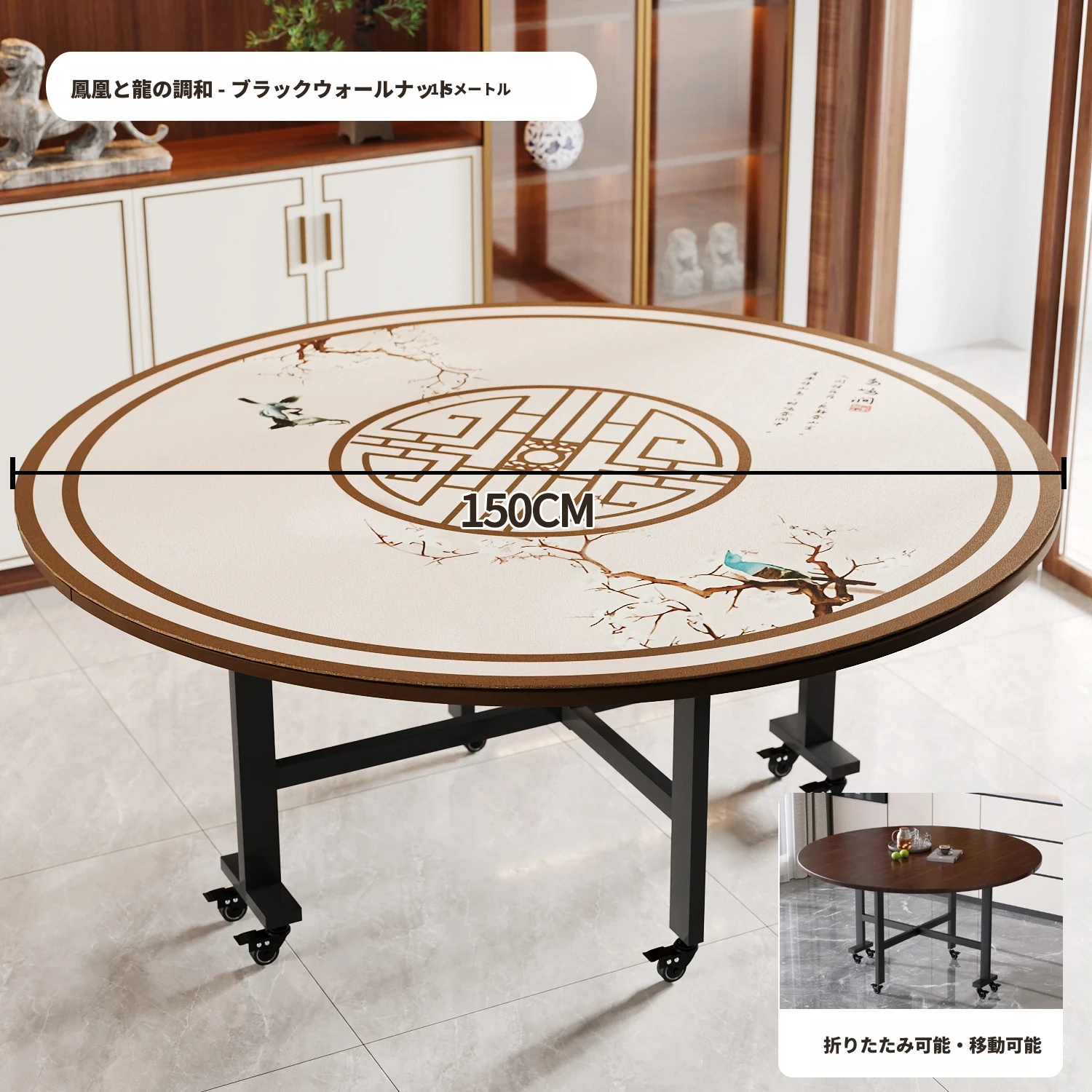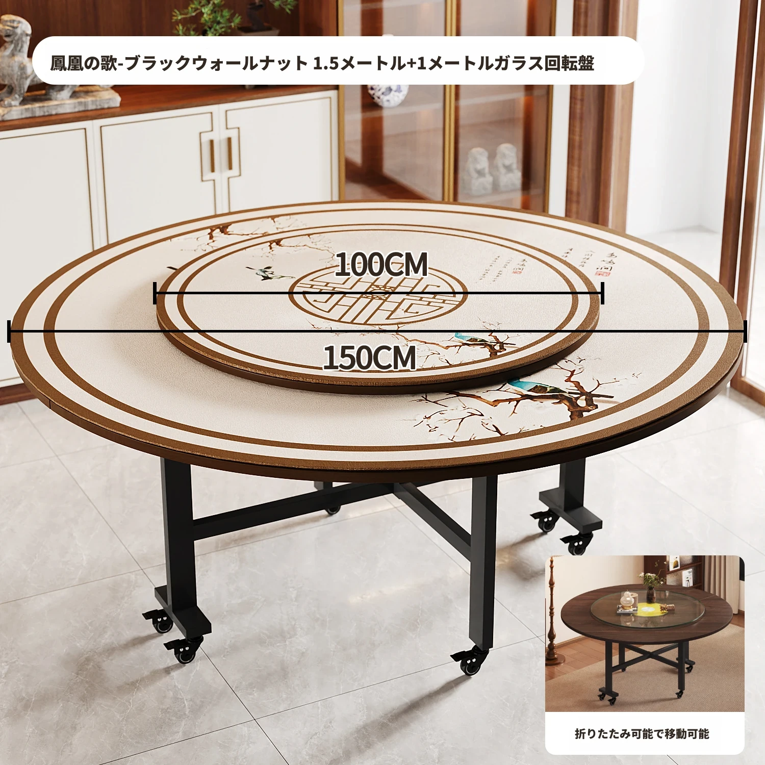 鳳凰の和音-1.5メートル【ブラックウォールナット柄】ガラス回転盤付き 防汚耐磨[輸出品質]