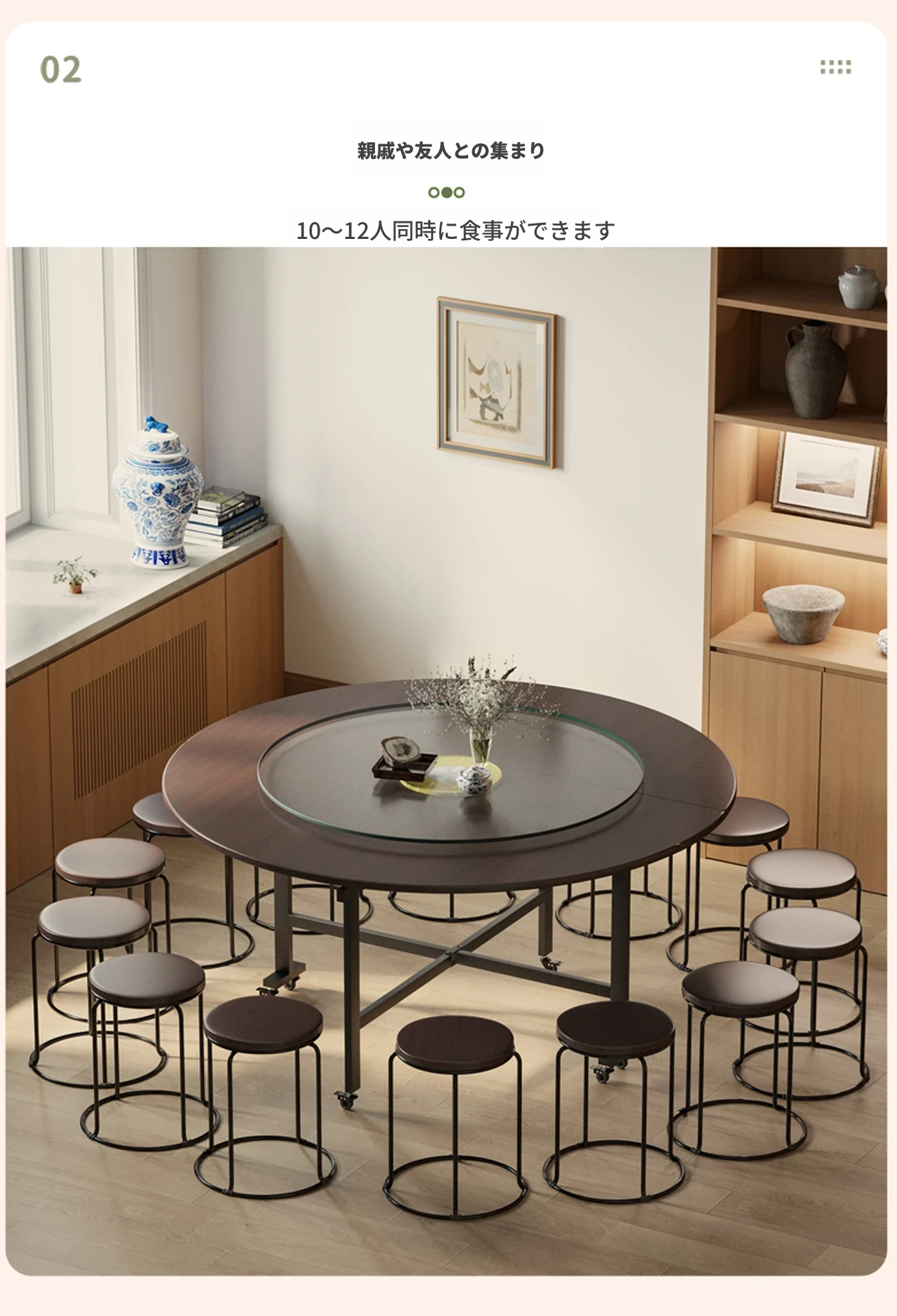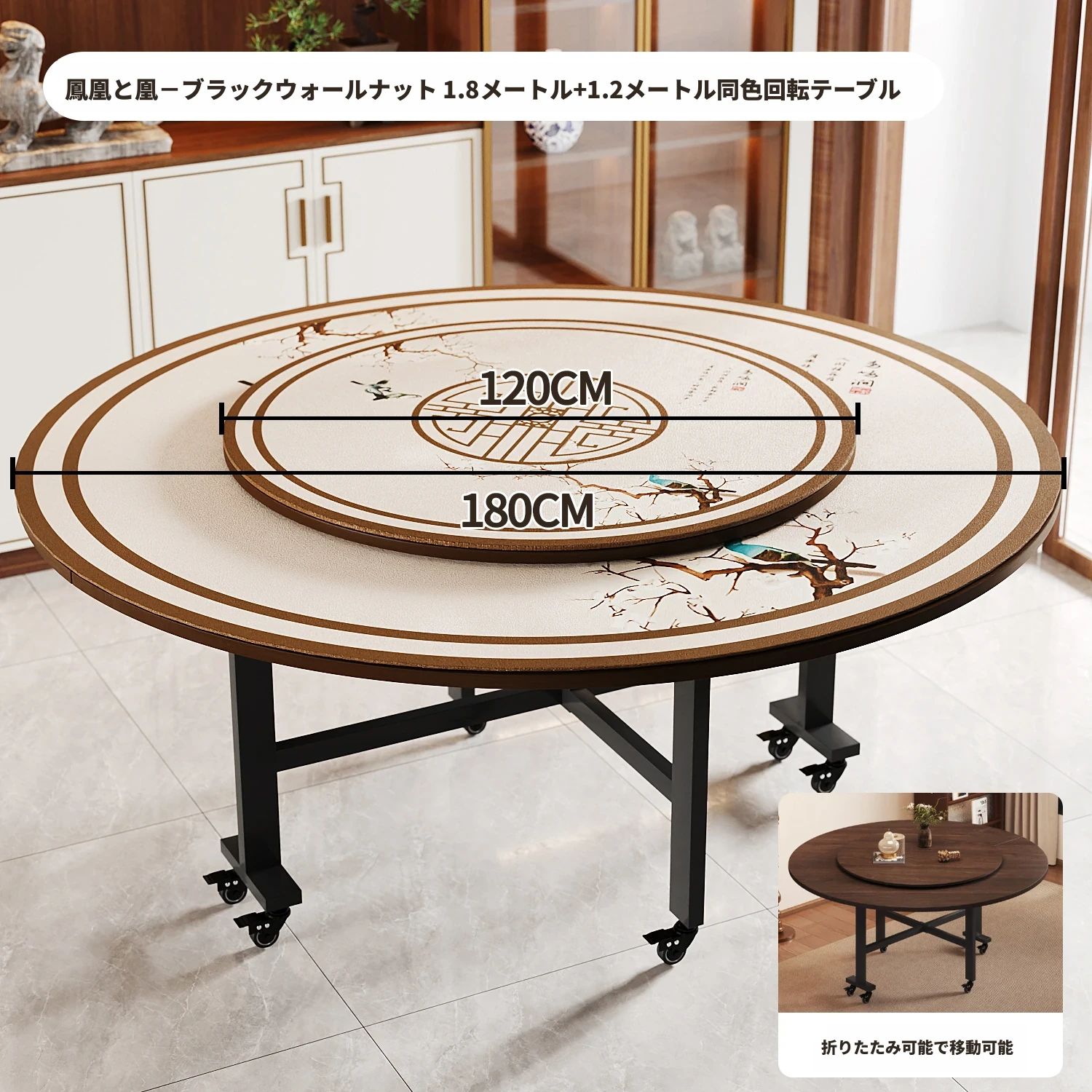 鳳凰の和音-1.8メートル【ブラックウォールナット柄】ガラス回転盤付き 防汚耐磨[輸出品質]