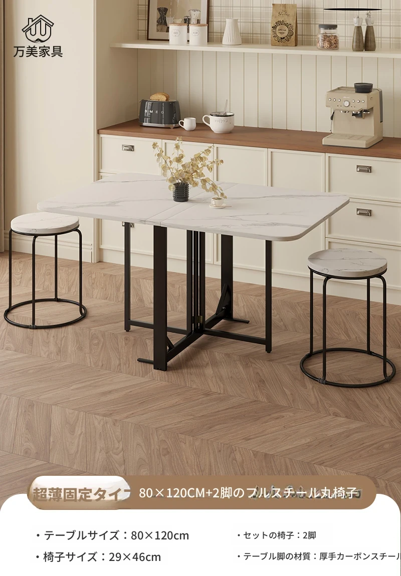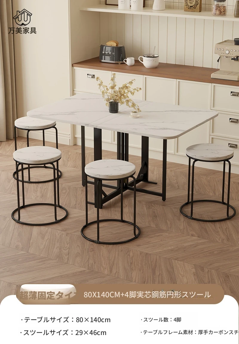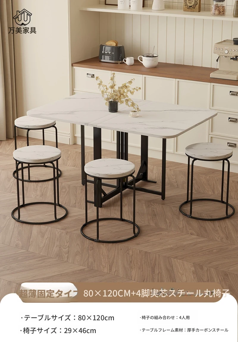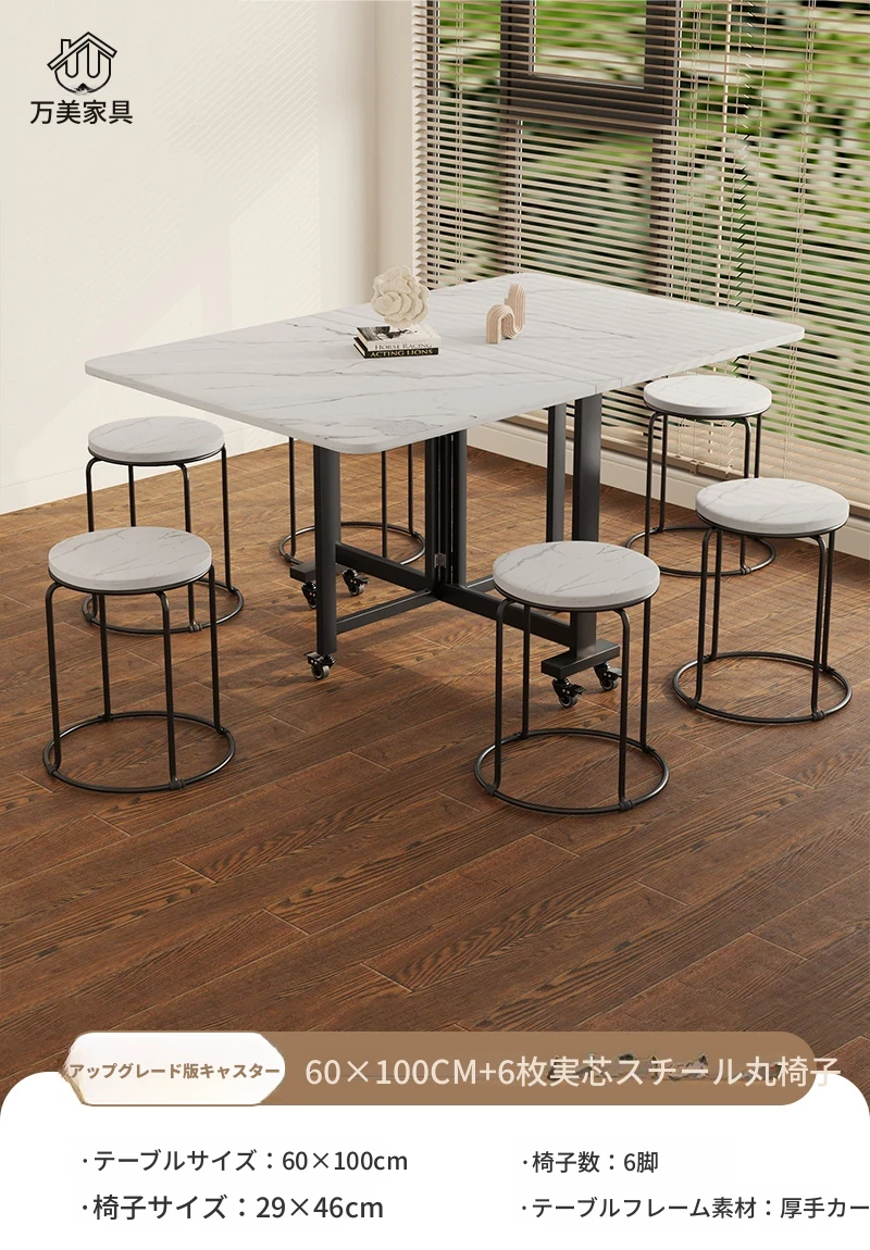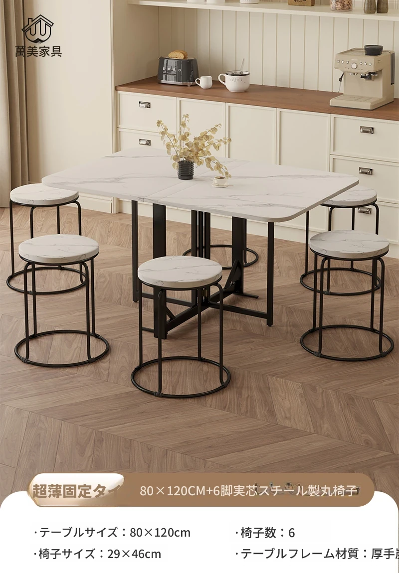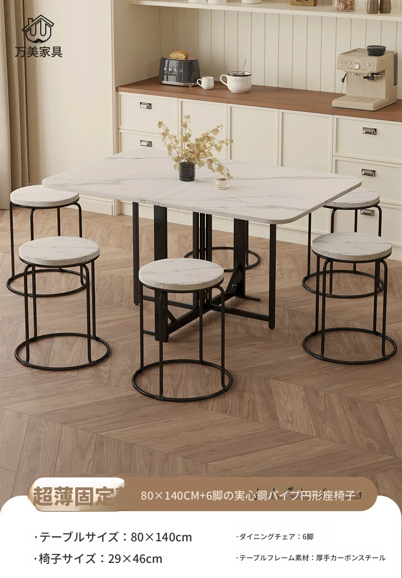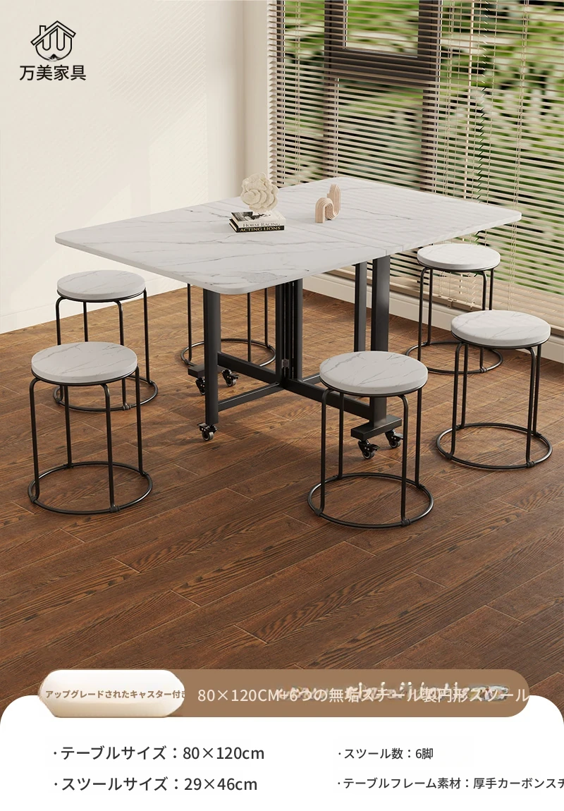 【お得なセット15】80*120ホワイト大理石模様+6本のソリッドスチールスツール(移動可能)耐荷重500斤
