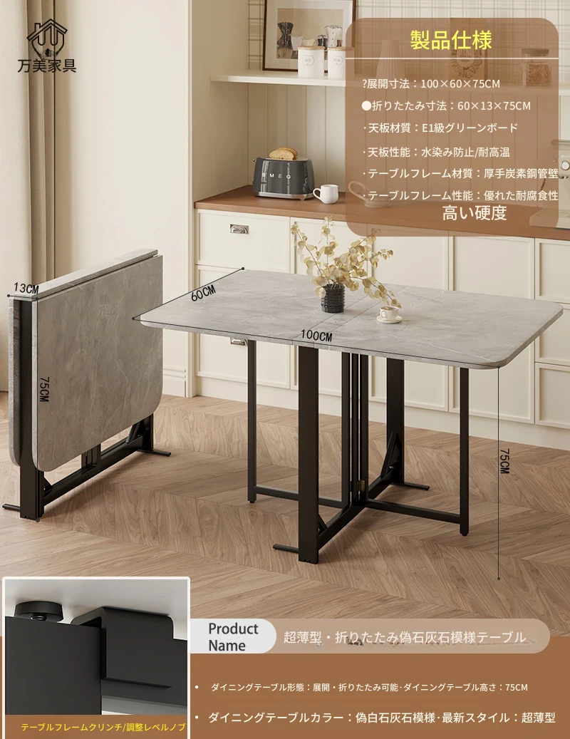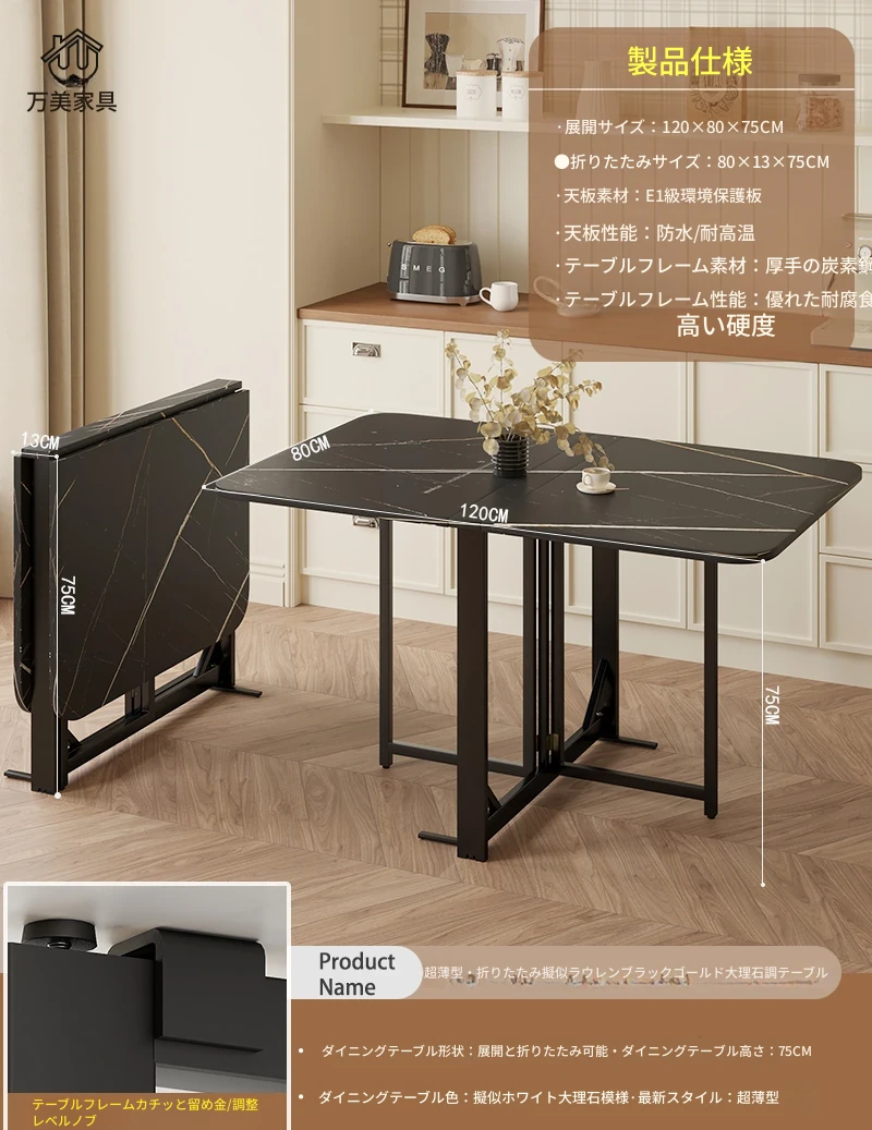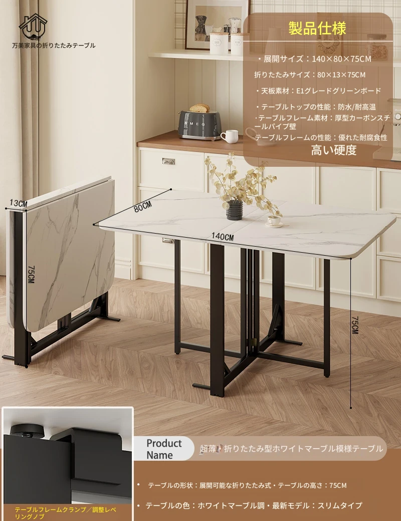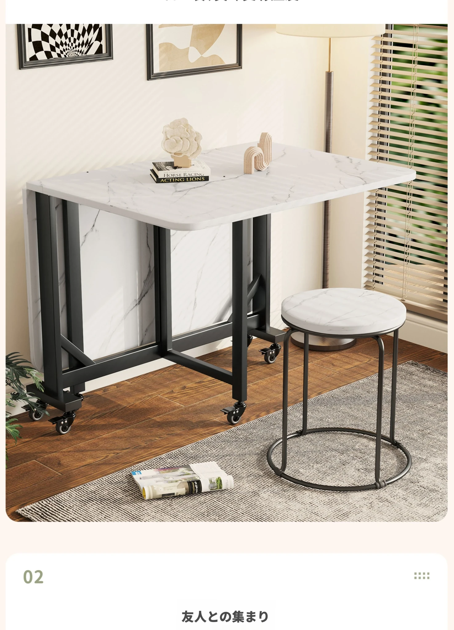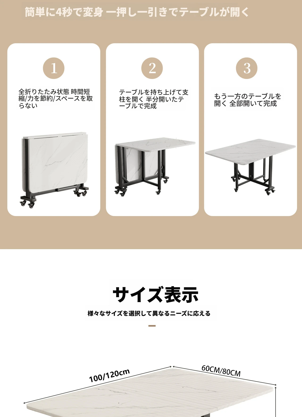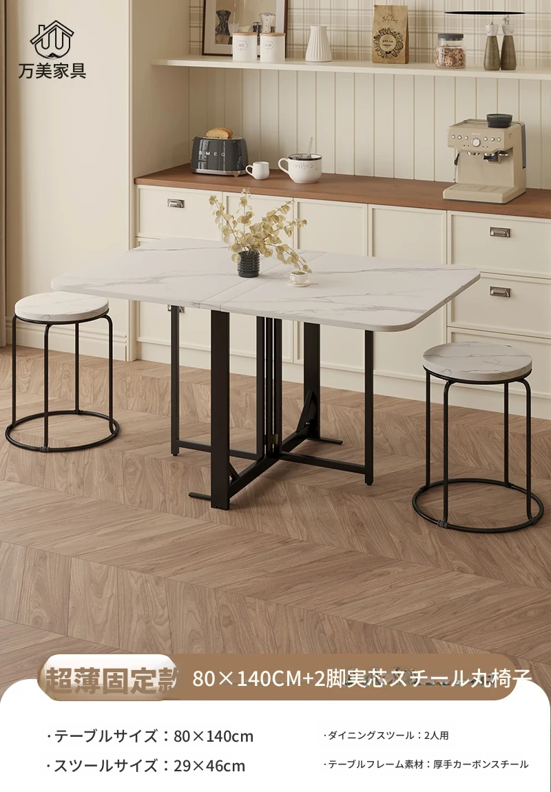 【お得なセット15】80*120ホワイト大理石模様+6本のソリッドスチールスツール(移動可能)耐荷重500斤