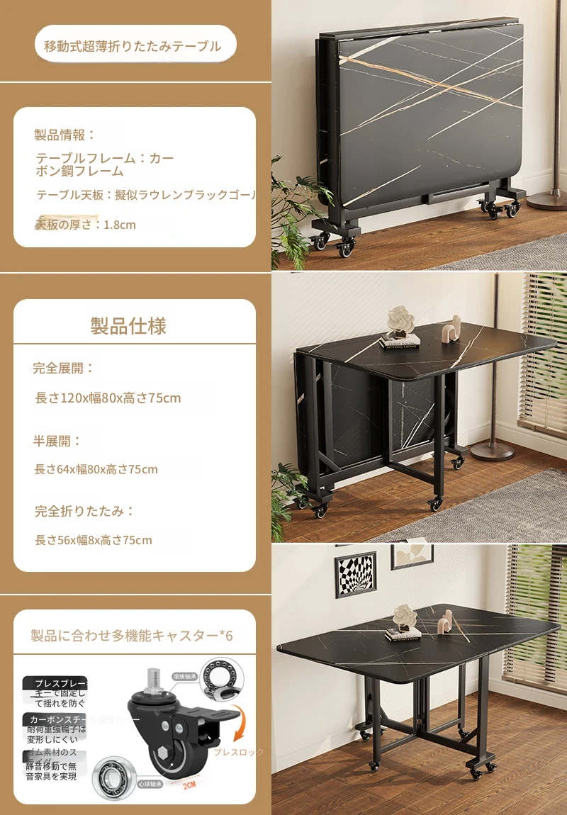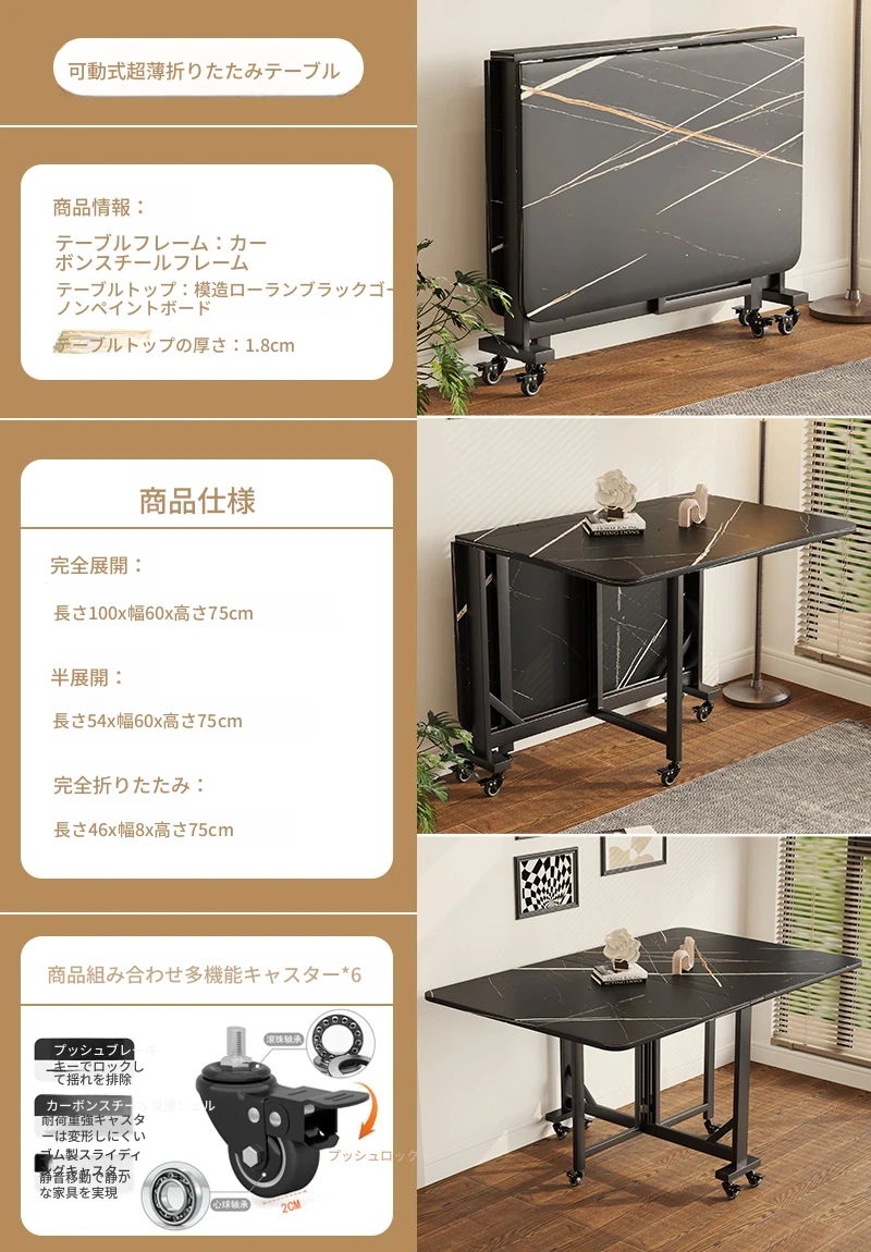 【アップグレードキャスター款】60*100ローレンブラックゴールド 移動簡単/固定