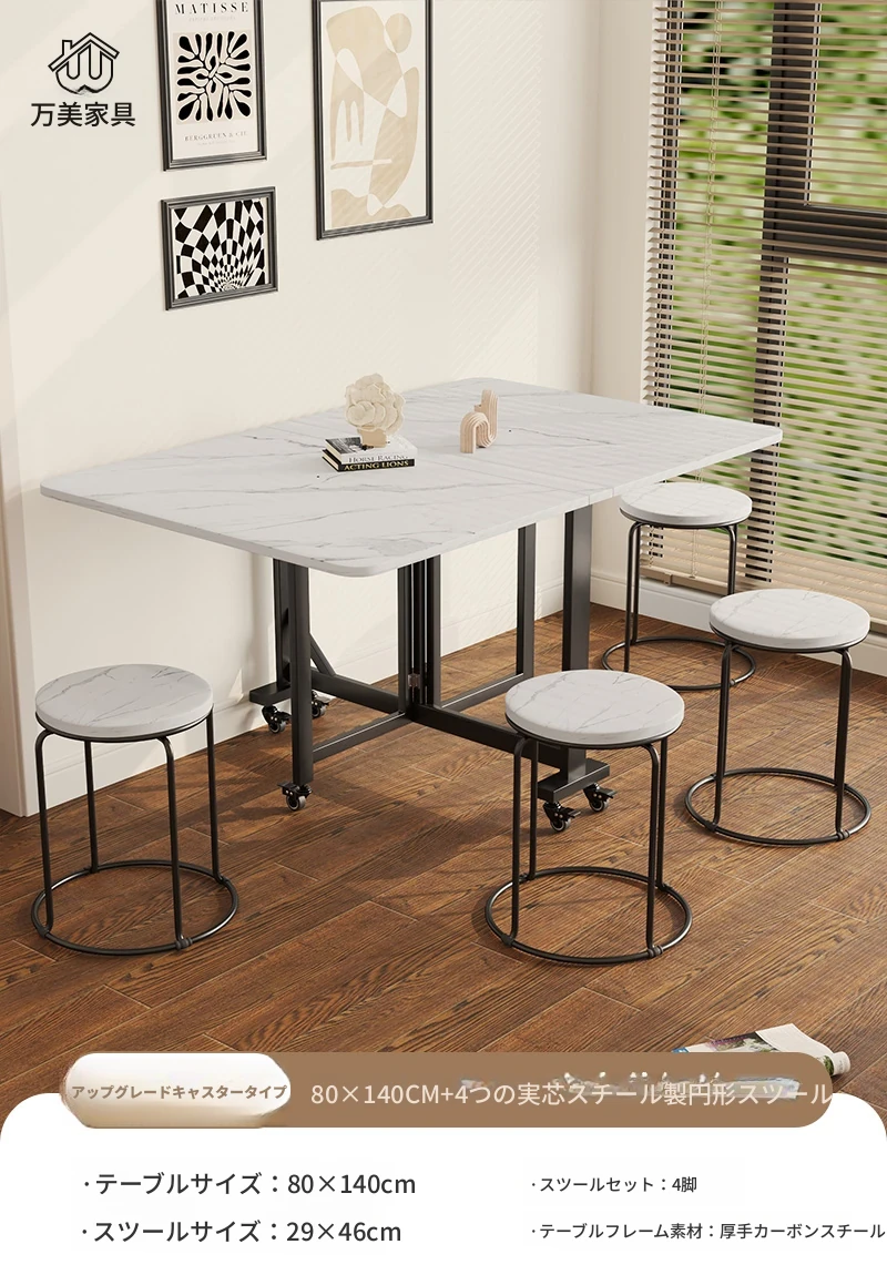 【お得なセット14】80*120ホワイト大理石模様+4本のソリッドスチールスツール(移動可能)耐荷重500斤
