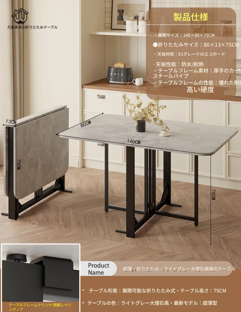 【お得なセット4】80*120ホワイト大理石模様+2本のソリッドスチールスツール(固定款)耐荷重500斤