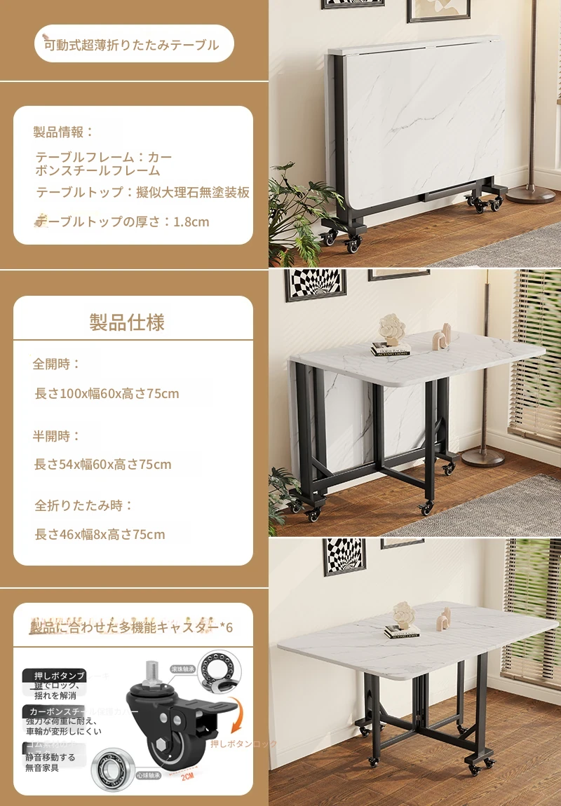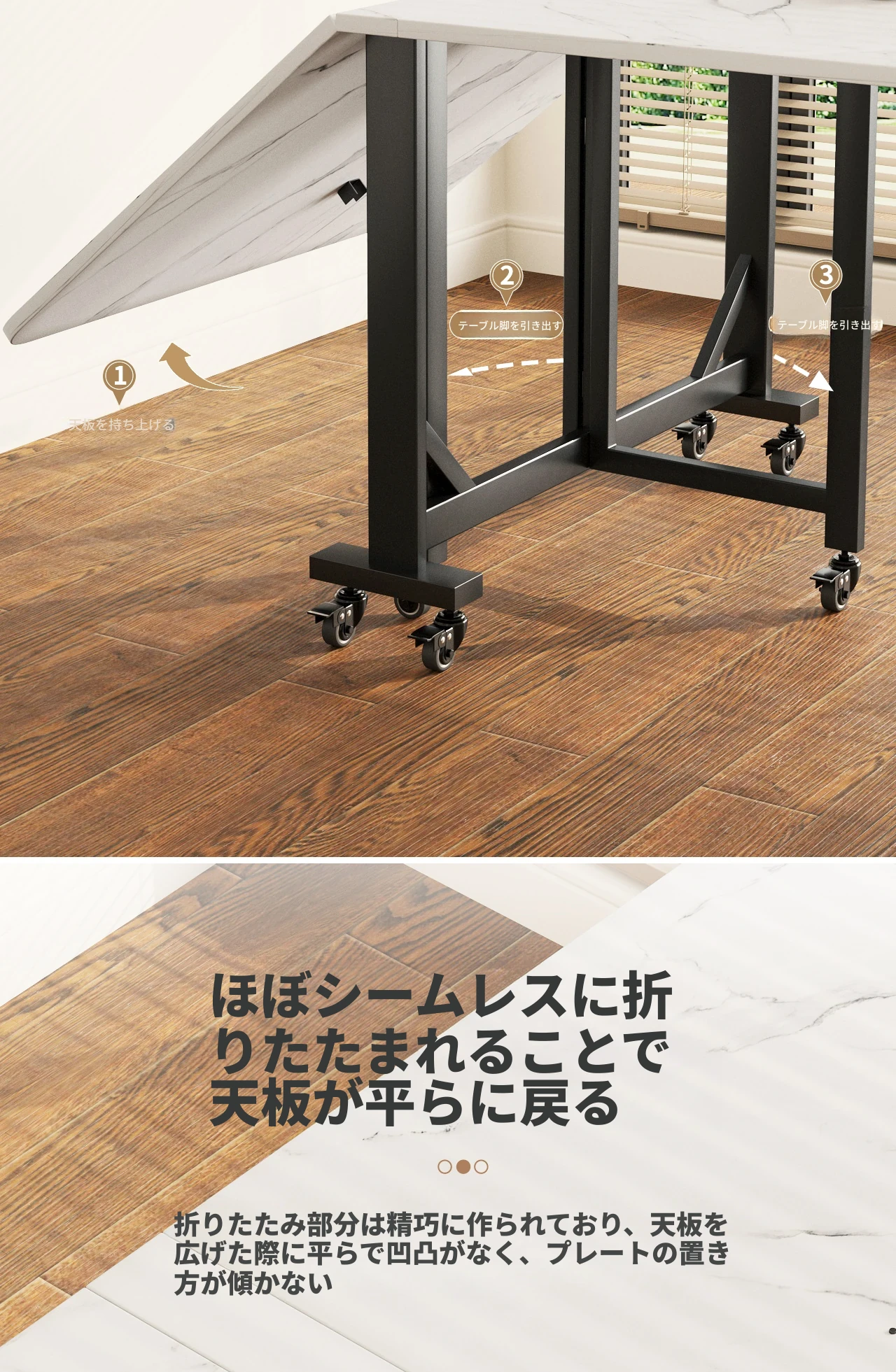 【アップグレードキャスター款】80*120ホワイト大理石模様 移動簡単/固定