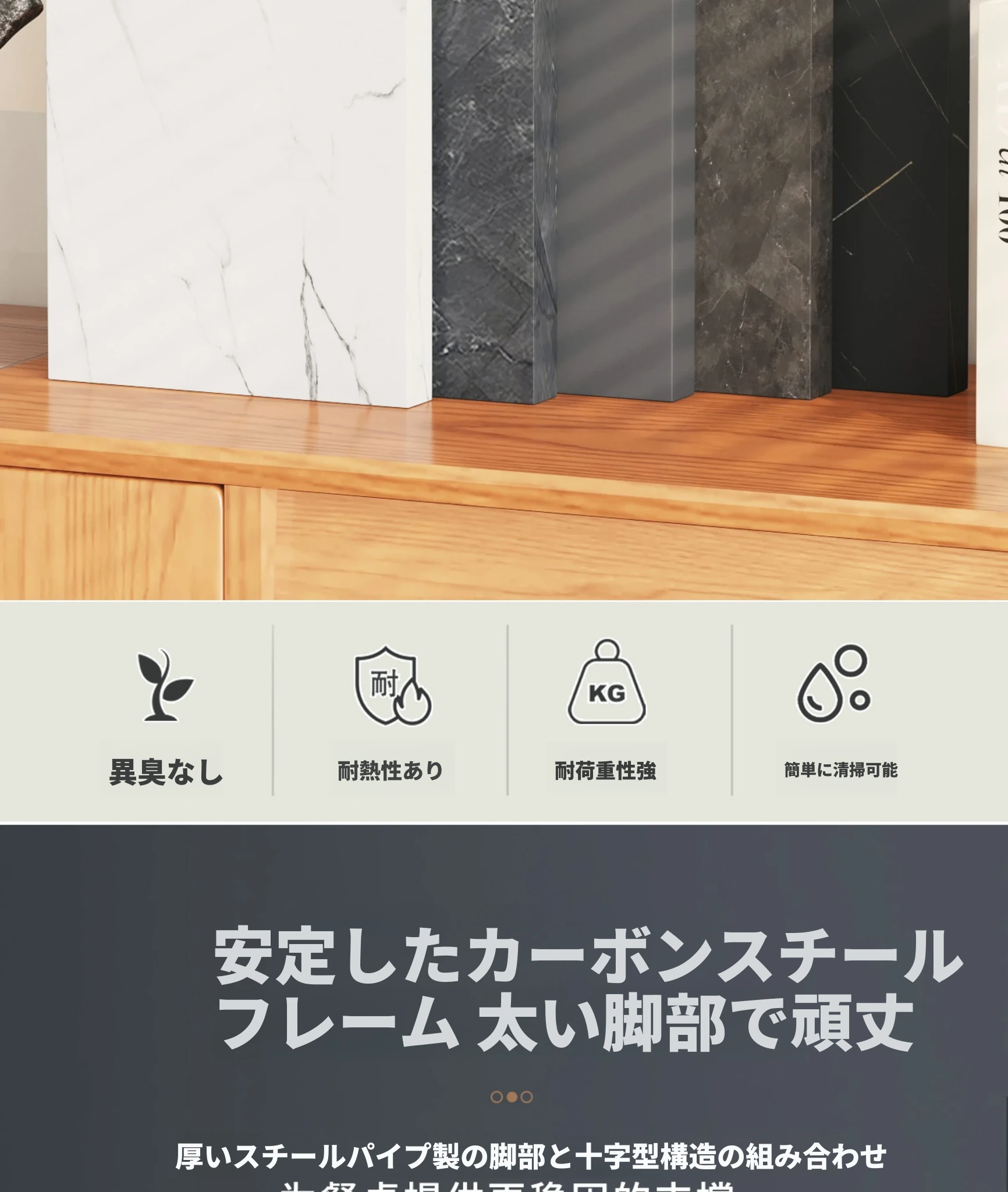 【お得なセット13】80*120ホワイト大理石模様+2本のソリッドスチールスツール(移動可能)耐荷重500斤