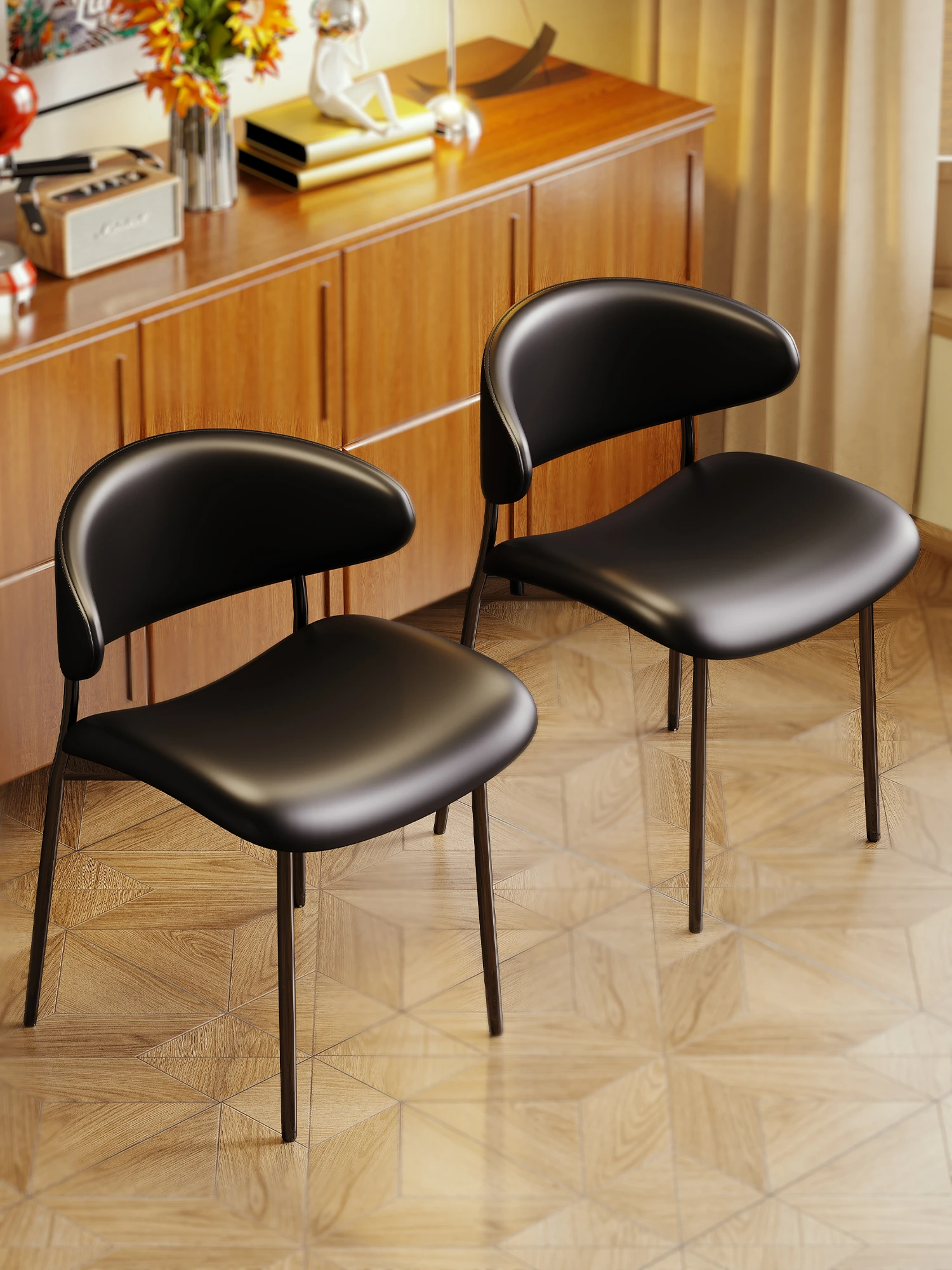 French Vintage Style Dining Table and Chairs Set - Minimalist Home Black Upholstered Backrest Chair, 2025 New Light Luxury Dining Chair with High-End Feel