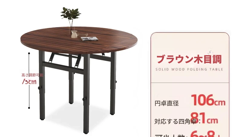胡桃色直径1.06メートル 調整可能な高さ4段階