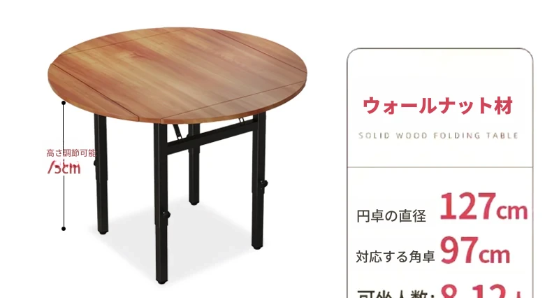 胡桃色直径1.37メートル 調整可能な高さ4段階