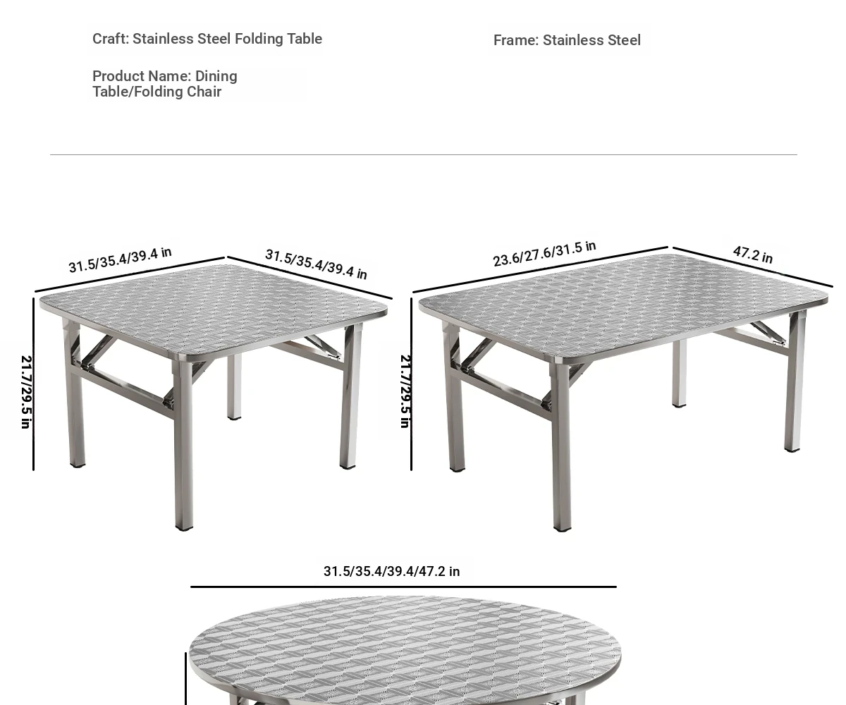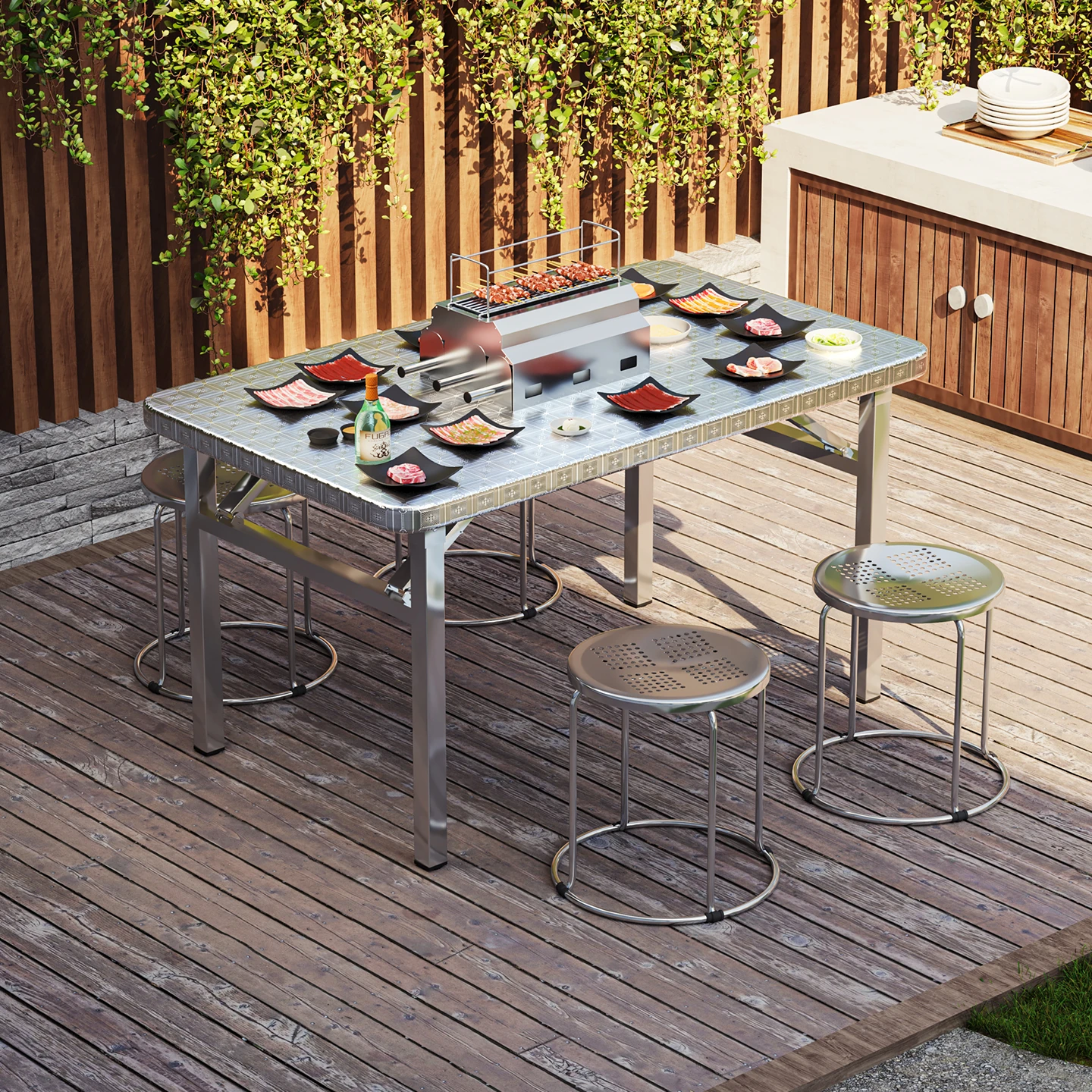 Portable Stainless Steel Folding Table for Outdoor Use - Ideal for Patios, Gardens, and BBQs. Perfect for Home, Villas, and Night Markets. Easy to Set Up and Store!