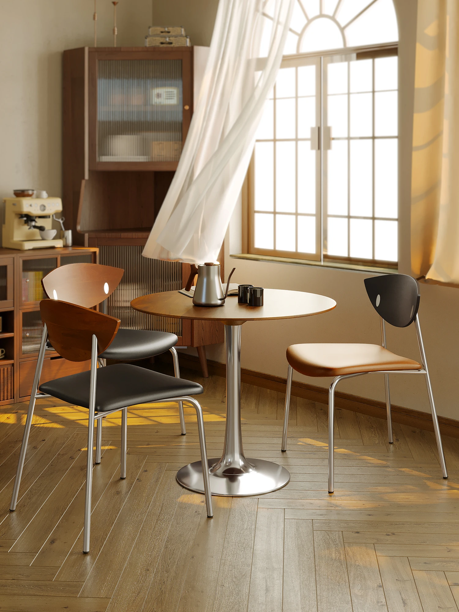 フレンチヴィンテージスタイルの中古ダイニングチェア、洗練された実木製の背もたれ、人気の軽奢デザイン!デザイナーのフィンチチェアで、食卓に上質な雰囲気をプラス。あなたの食事空間を特別に演出します。
