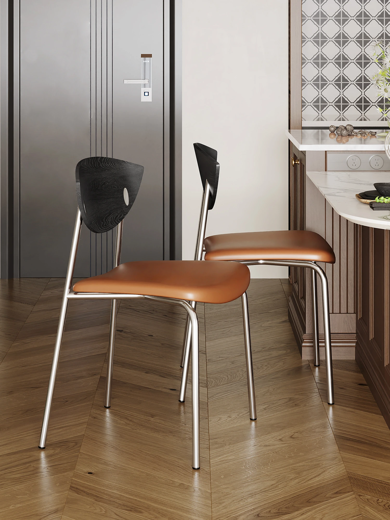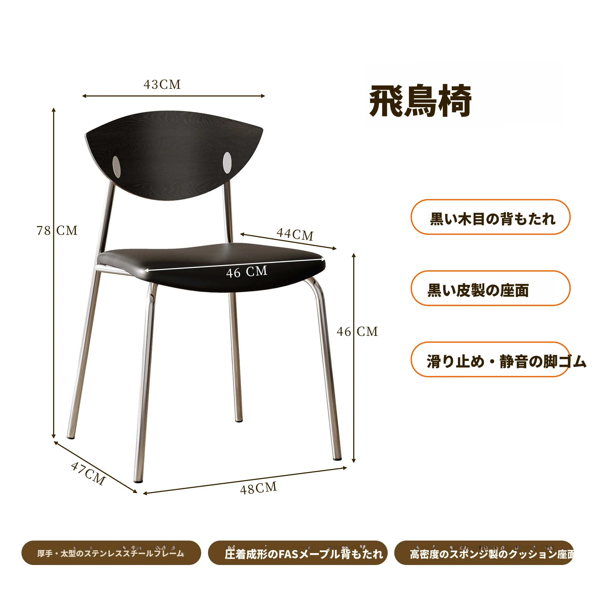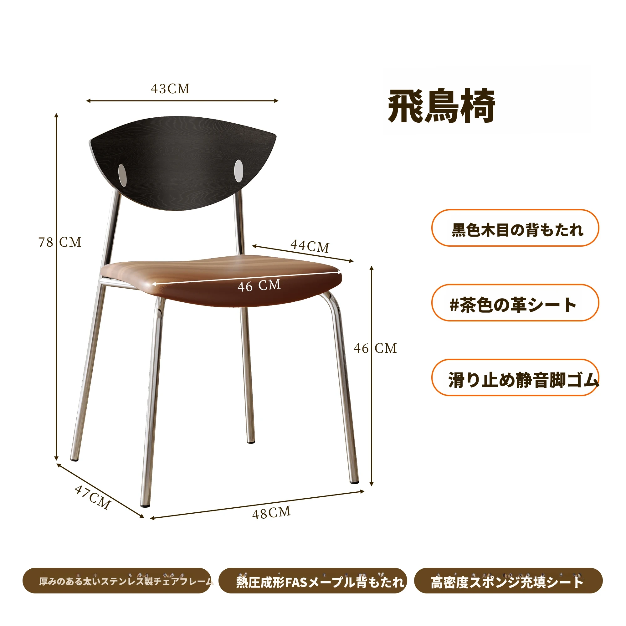 飛鳥チェア 黒色の背もたれ+茶色のクッション