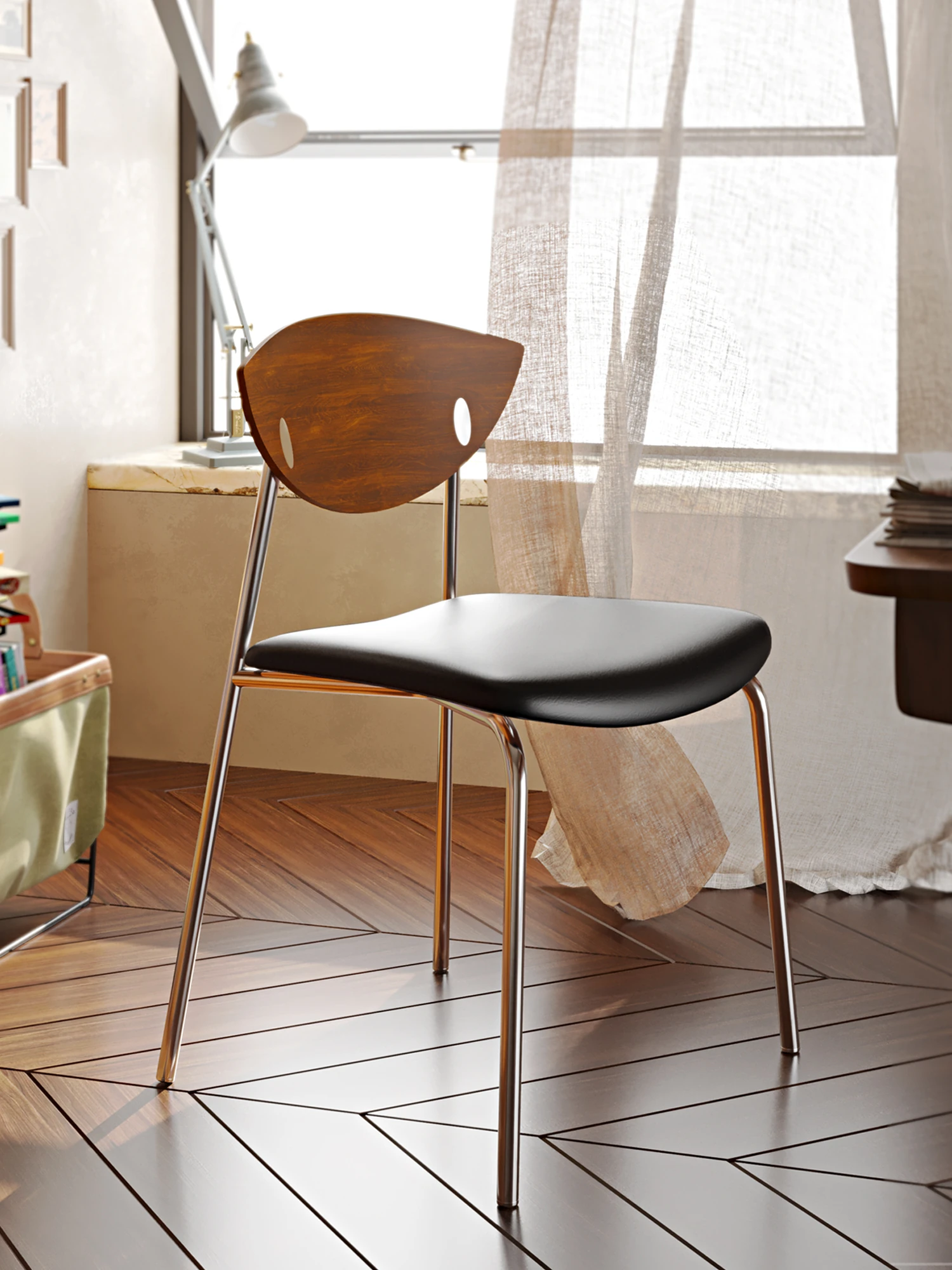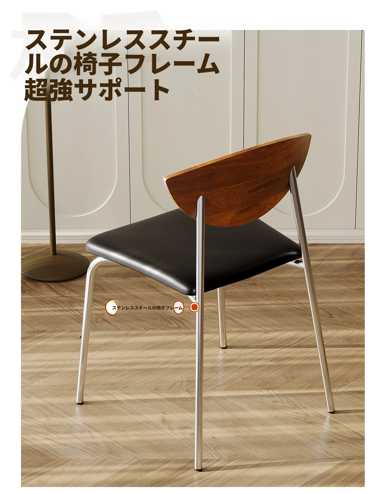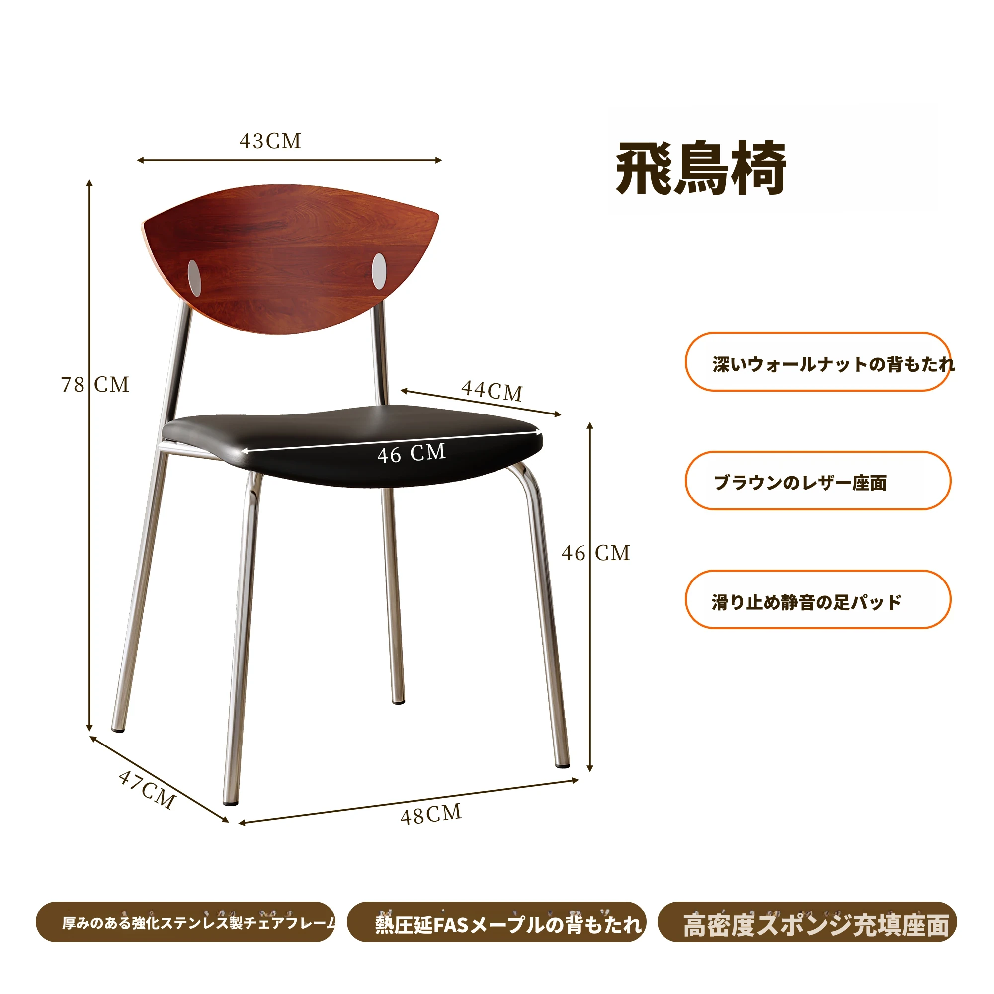 飛鳥チェア 深ウォールナット色の背もたれ+黒色のクッション