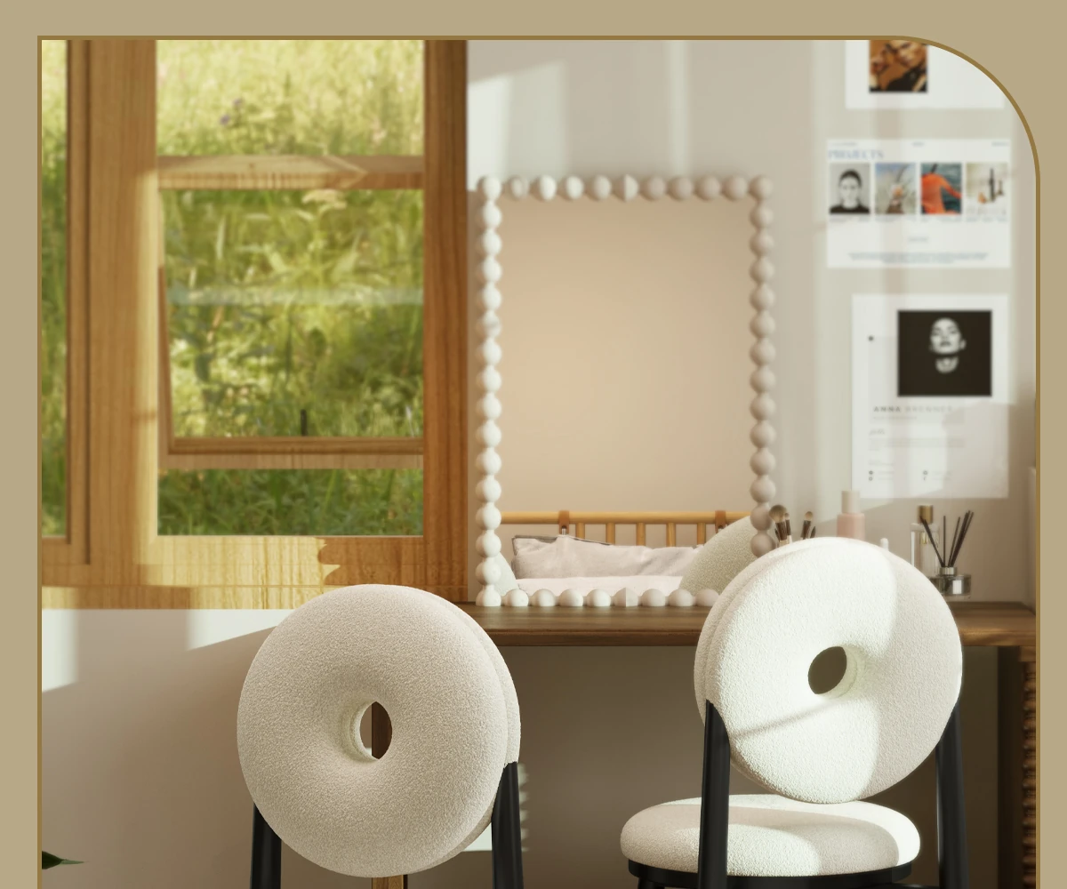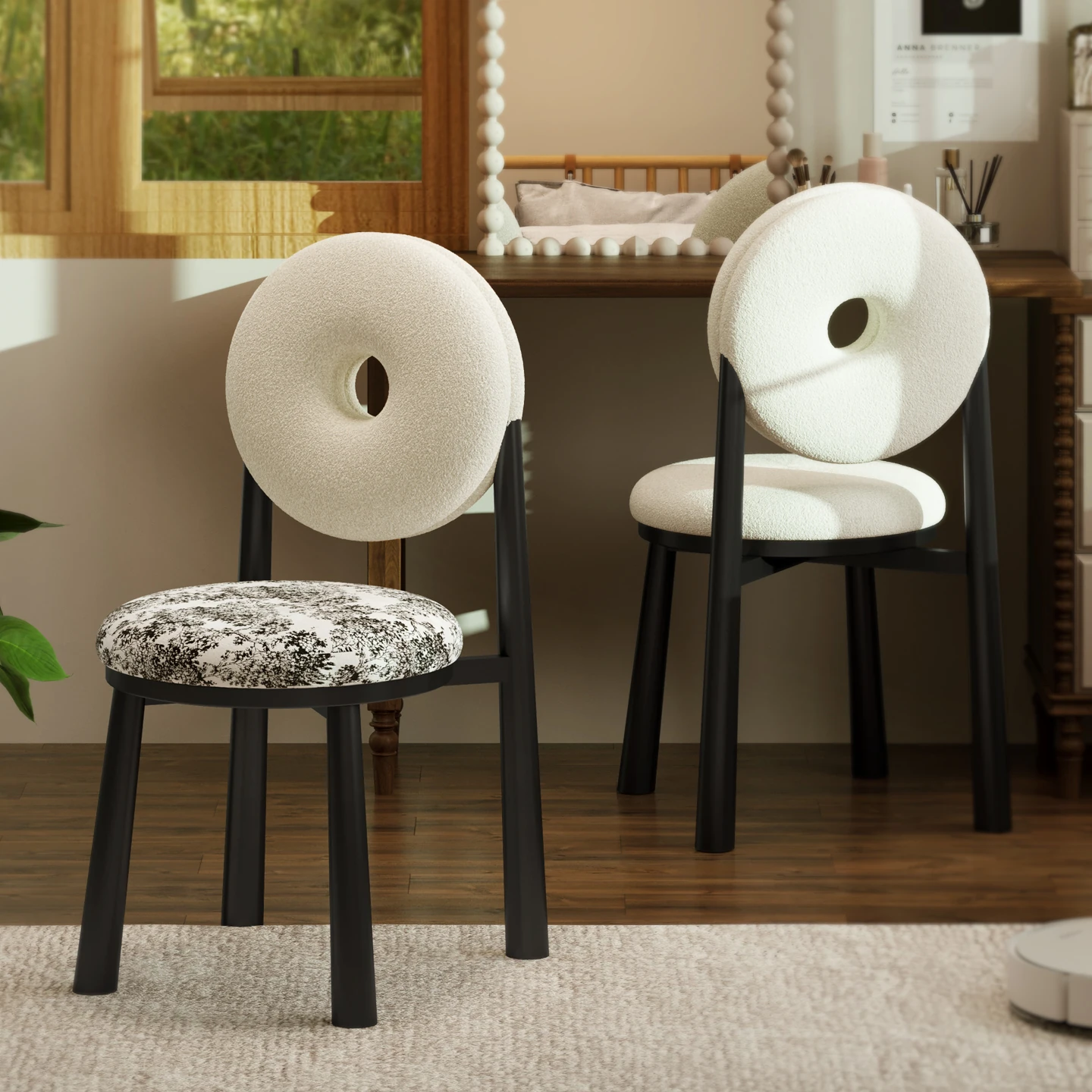 Rice White⭐️ Fat chair + black legs(Bold thickened)