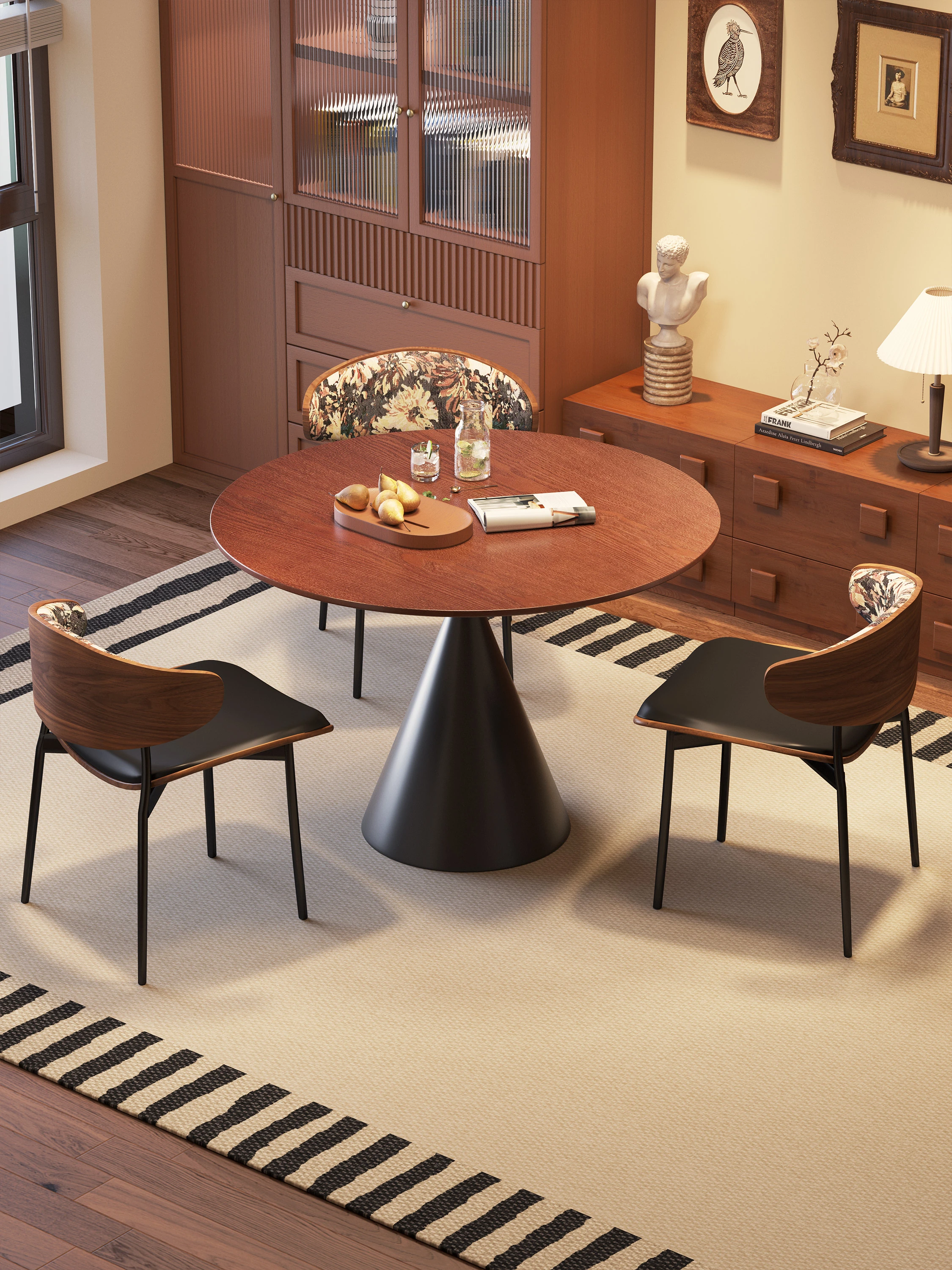 Vintage Style Dining Chairs for Small Spaces - Elegant Upholstered Backrest, Perfect for Luxury Dining Experience with Round Solid Wood Dining Table Set